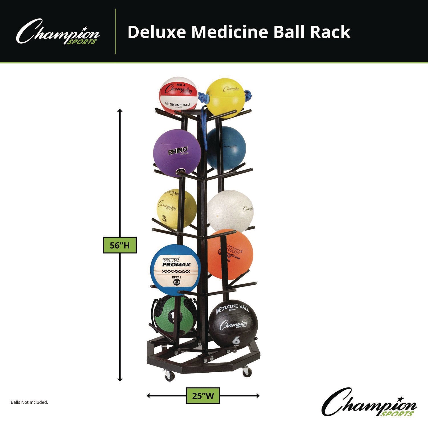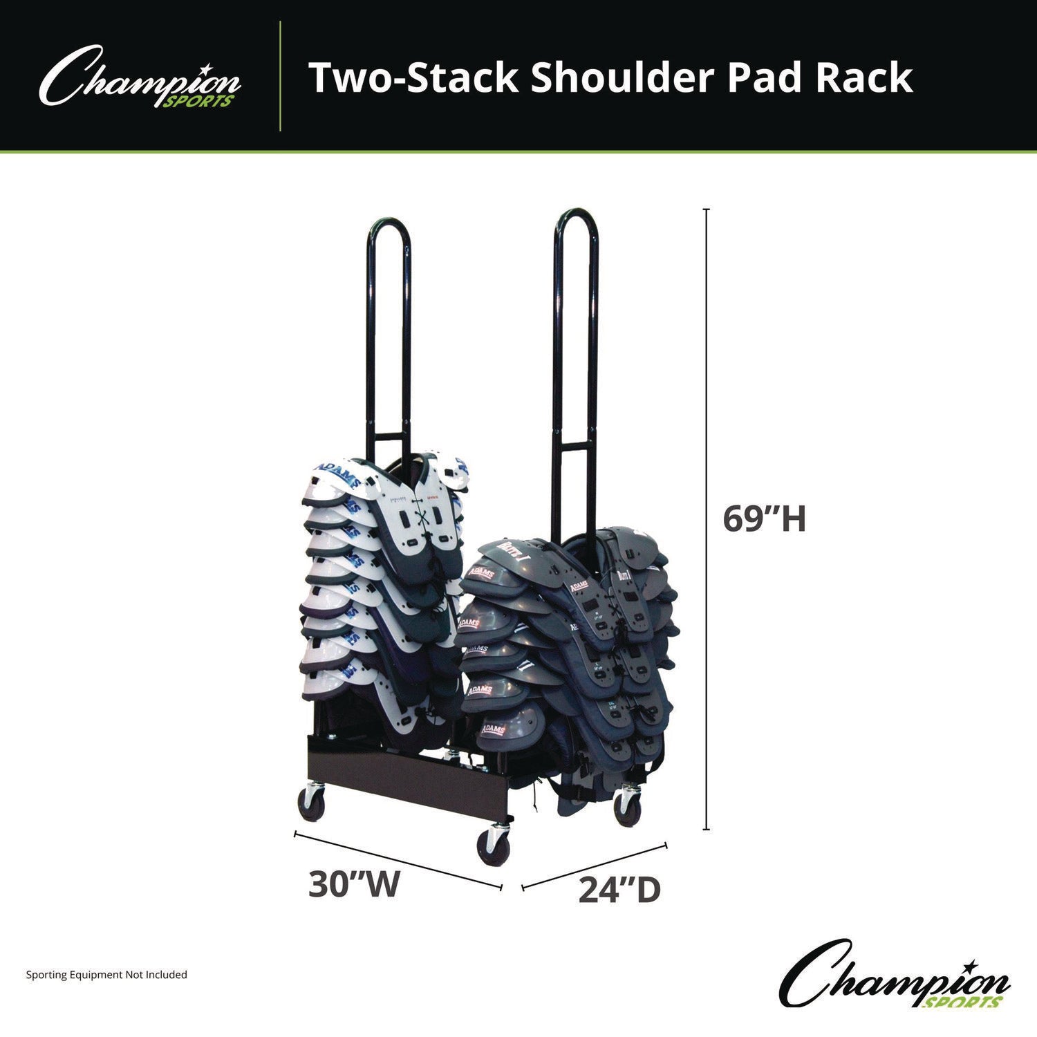 Champion Sports Mobile Two-Stack Shoulder Pad Rack, Metal, 176 lb Capacity, 24" x 30" x 69", Black