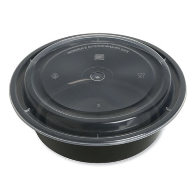 GEN Microwavable Food Container with Lid, Round, 24 oz, 7.28 x 7.28 x 1.96, Black/Clear, Plastic, 150/Carton