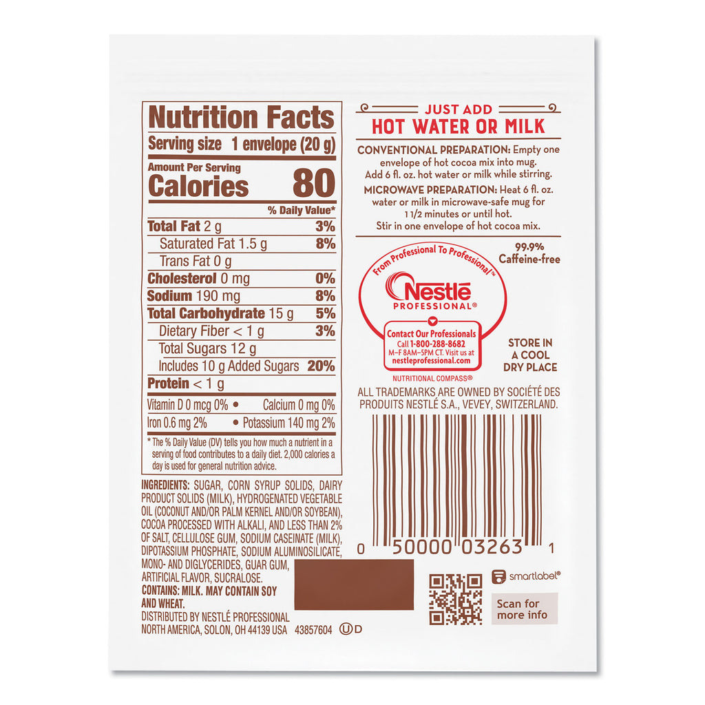 Rich hot chocolate mix to stay warm on those cold days. Contains 35% less sugar than other major brands. Enjoy the sweet flavor of Nestle Hot Cocoa. Each packet makes one perfect cup of cocoa.