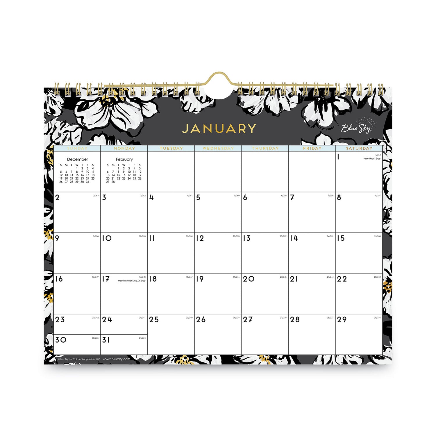 Blue Sky® Analeis Monthly Planner, Floral Artwork, 10 x 8, White/Black/Coral Cover, 12-Month (Jan to Dec): 2025