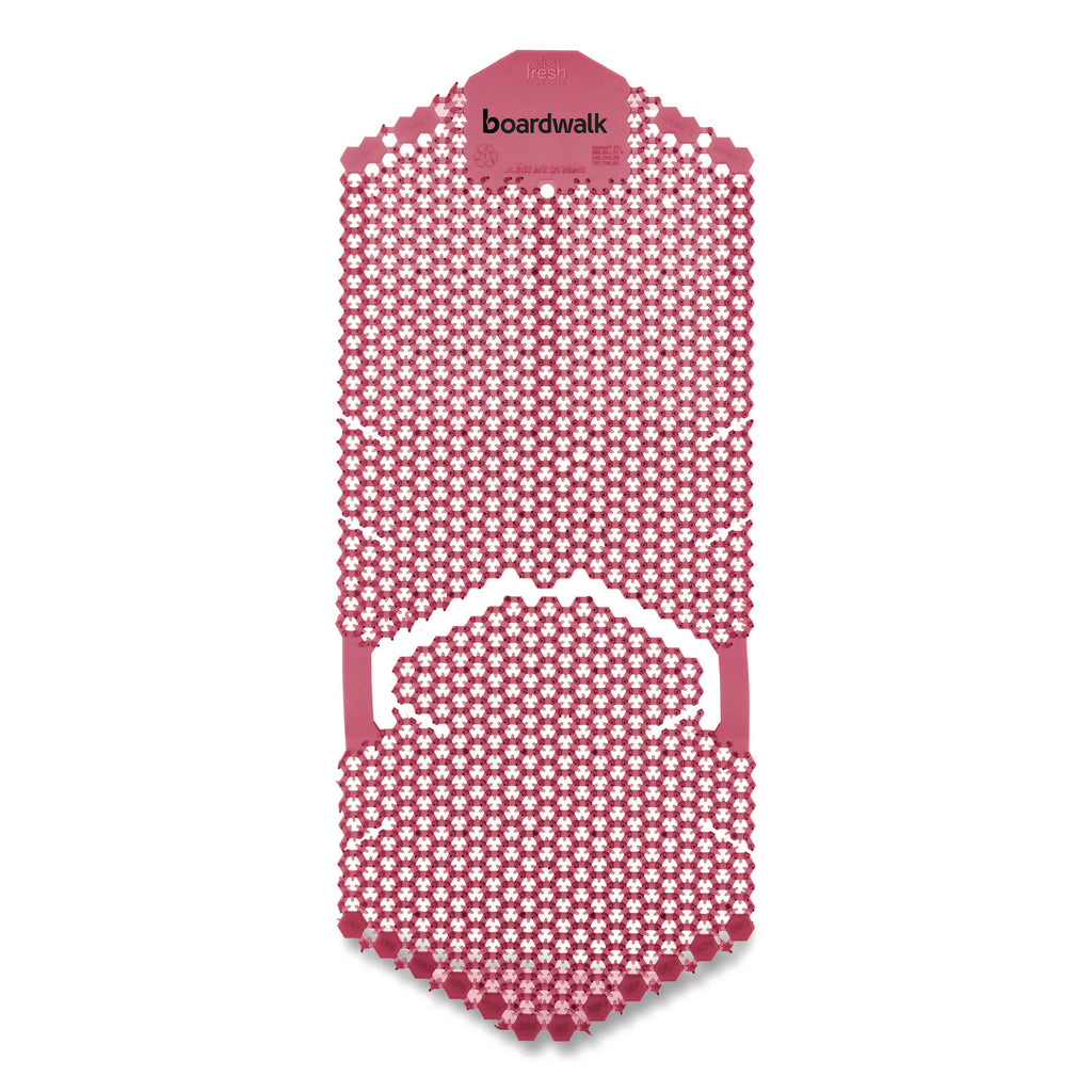 The vertical 60-day urinal screen contains three times more fragrance than competitors. The patented two-sided design eliminates 99% of urine splash on both sides for error-free installation. The Vertical screen doesn't require mounting, simply place the base over the drain and lean the body up the back of the urinal and you're done. No suction cups to engage so it's faster and there's less waste. Each screen has date tabs for replacement reminders and contains beneficial bacteria that consume odors and keep drains clean, clear and smelling fresh.