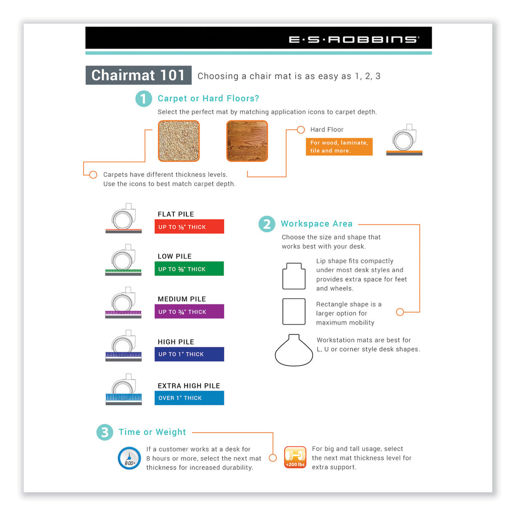 - Protects extra high pile carpet over 1 thick (including padding) from chair caster wear and tear.