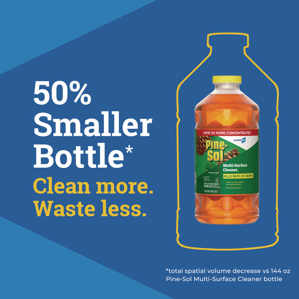 - One bottle of reduces plastic waste by 30% compared to previous Pine-Sol® 144 oz bottle.