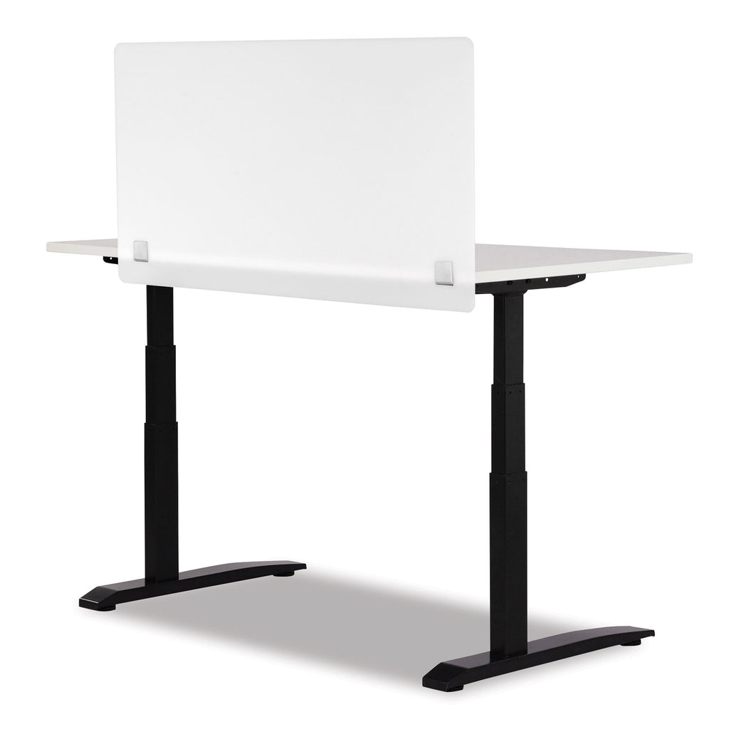 Support social distancing and help workers, customers and guests reduce their exposure to droplets produced by coughing, sneezing and talking in your office, small business, clinic or hospital. Designed to establish a physical barrier between people to help reduce the spread of germs, each panel is sold separately. Combine two panels to create corner "L" shapes for personal desks or service counters or add a third to build a more isolated, three-sided cove workstation. Install panels on flat-edged surfaces that measure one inch thick or greater using the included screws and steel brackets. Each panel features acrylic construction for simple cleaning and maintenance. Screwdriver required for installation and not included.