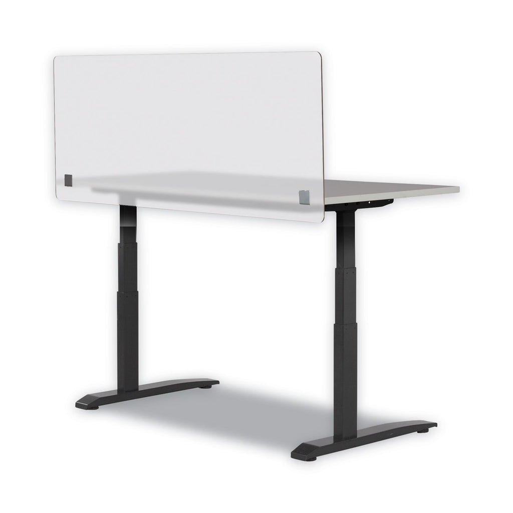 Support social distancing and help workers, customers and guests reduce their exposure to droplets produced by coughing, sneezing and talking in your office, small business, clinic or hospital. Designed to establish a physical barrier between people to help reduce the spread of germs, each panel is sold separately. Combine two panels to create corner "L" shapes for personal desks or service counters or add a third to build a more isolated, three-sided cove workstation. Install panels on flat-edged surfaces that measure one inch thick or greater using the included screws and steel brackets. Each panel features acrylic construction for simple cleaning and maintenance. Screwdriver required for installation and not included.