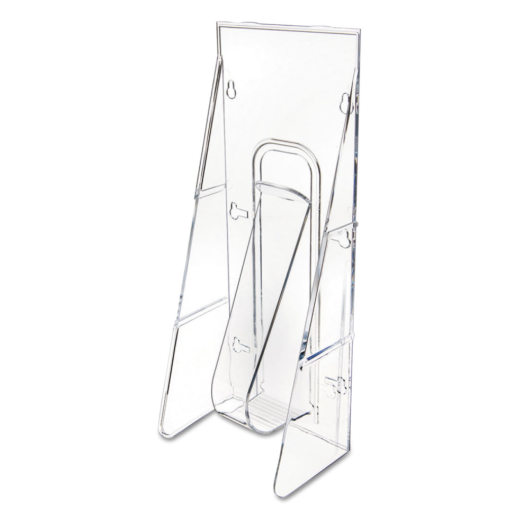 Showcase brochures, catalogs and more in this sleek, contemporary pocket. Unique tension bracket keeps literature upright for excellent visibility and a consistently tidy look. Stair-step design prevents sheets from sliding. Clear plastic pockets are virtually unbreakable and tongue and groove sides connect together to create a custom display. 2.63" capacity per pocket.