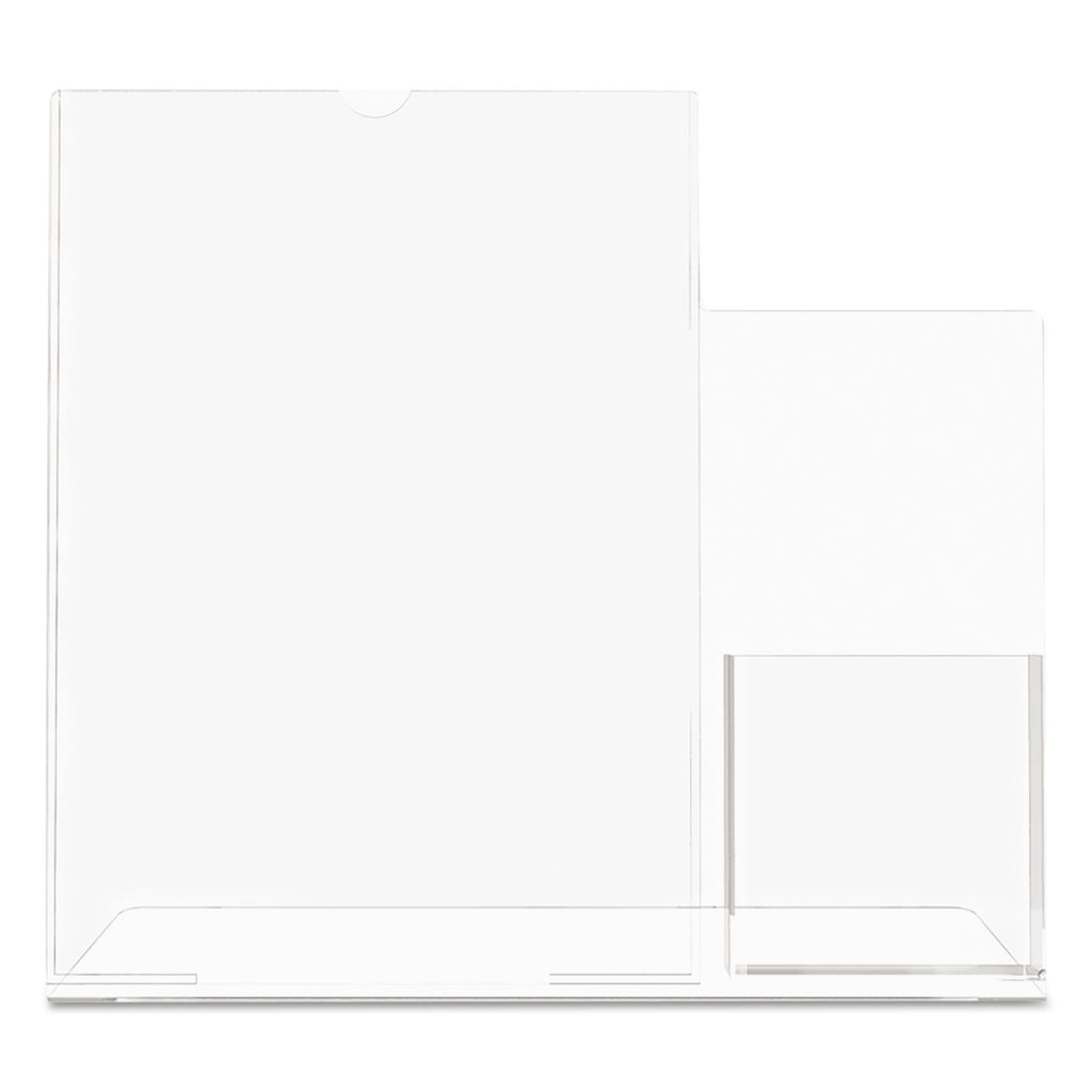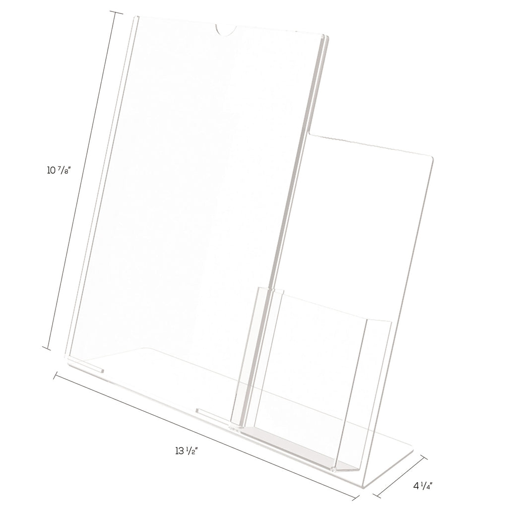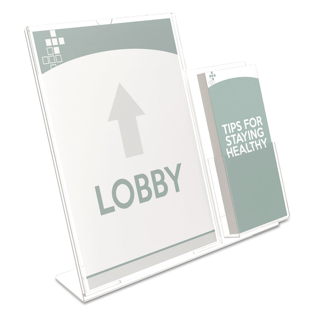 - Sign holder with attached pocket allows your entire sign to be visible while offering a take away brochure.