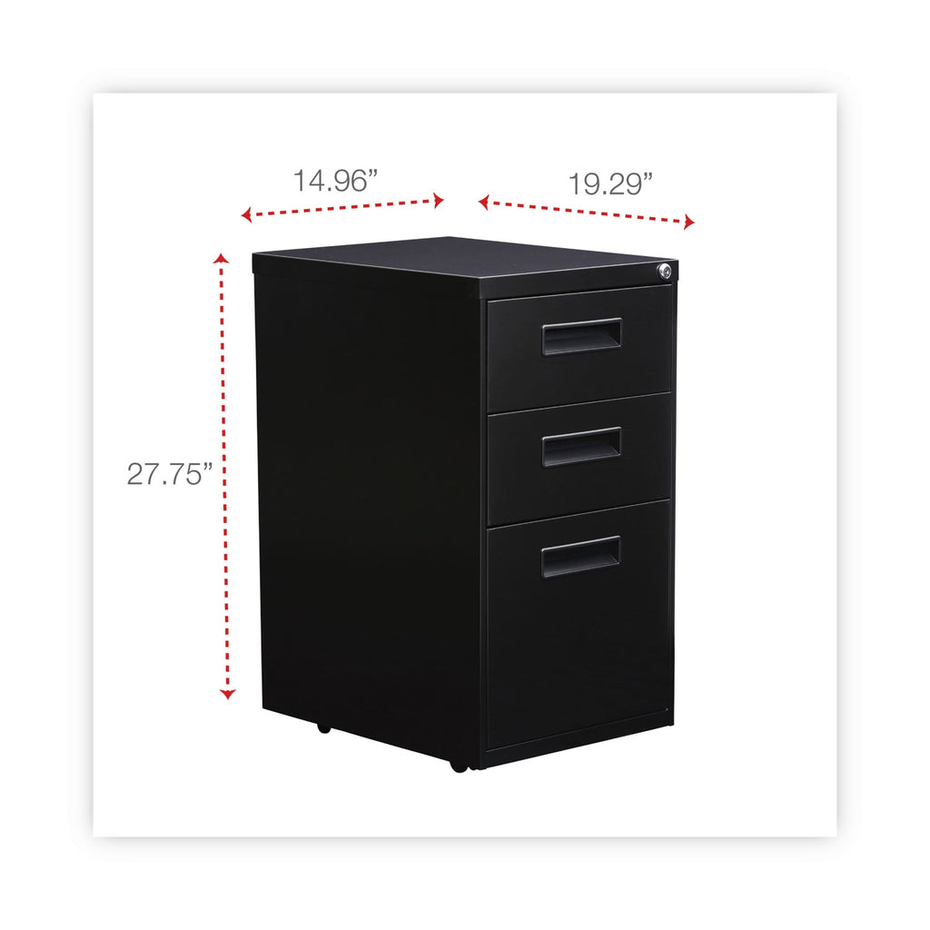 High-sided file cabinet for letter or legal-size filing. Counterweight prevents tipping. Visible, easy-access casters, two locking. Steel ball bearing slide suspension helps drawers glide smoothly and with ease. 3/4 extension on box drawers and full-length extension on file drawers for maximum accessibility. Full-length pull. Box drawers include one divider and pencil tray.