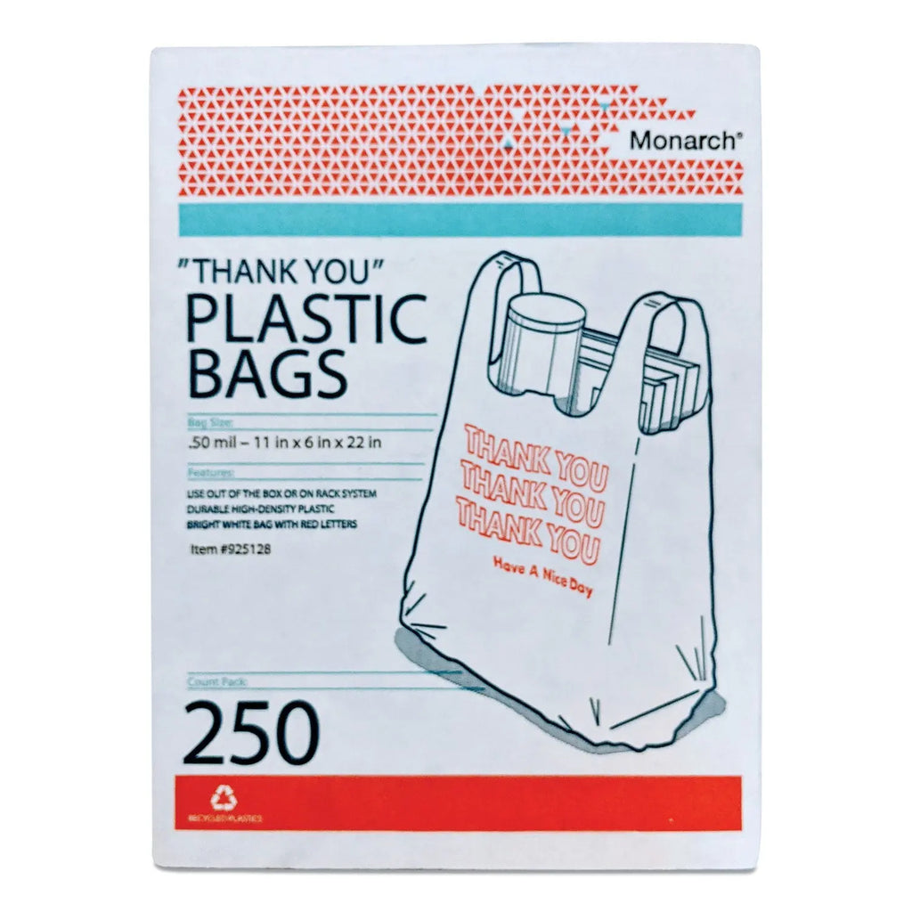 Remind your customers how much you appreciate their business. "Thank You - Have a Nice Day" is printed in red on the face of each bag. Loop handles make carrying easy. Slits near the handles allow you to hang them where they're handy.