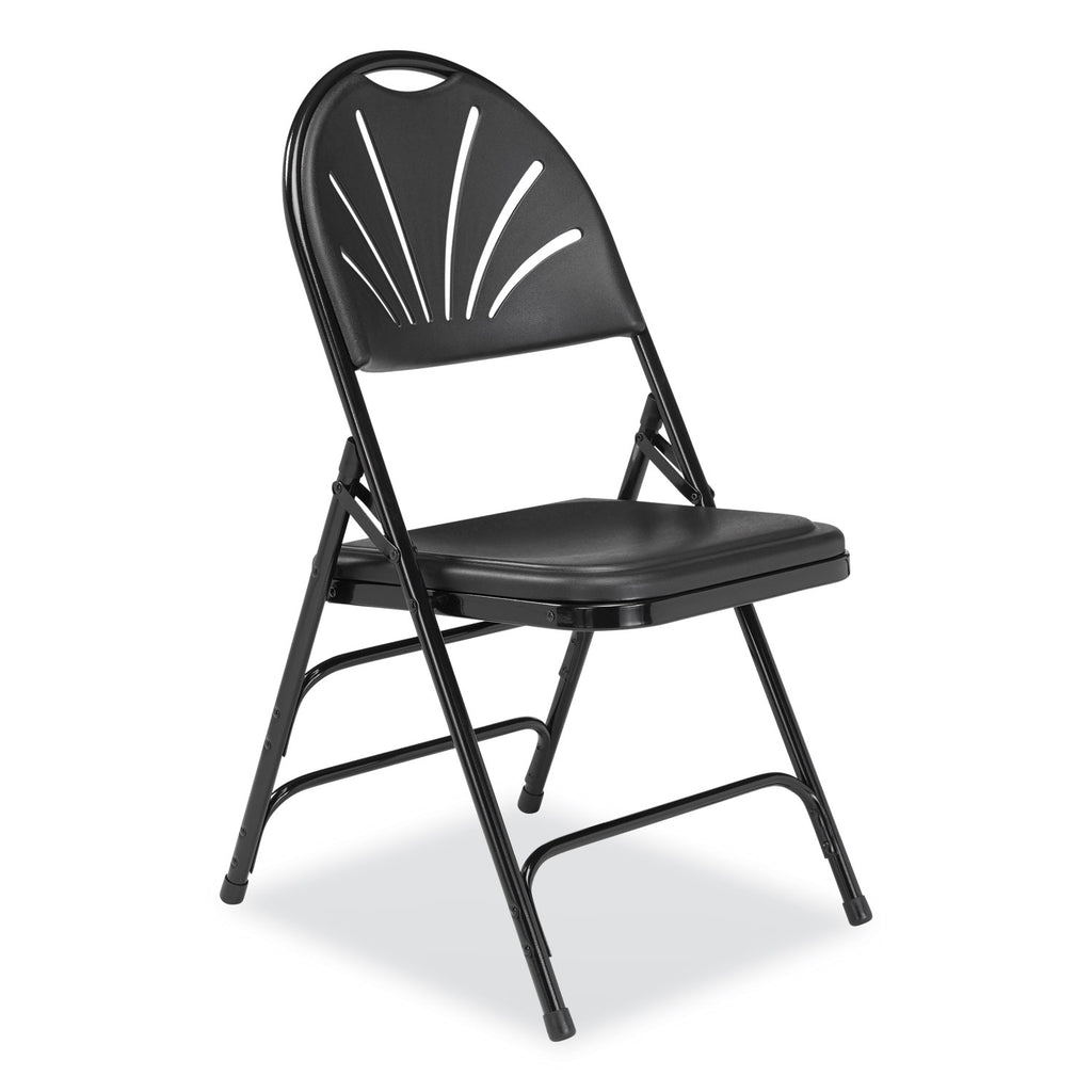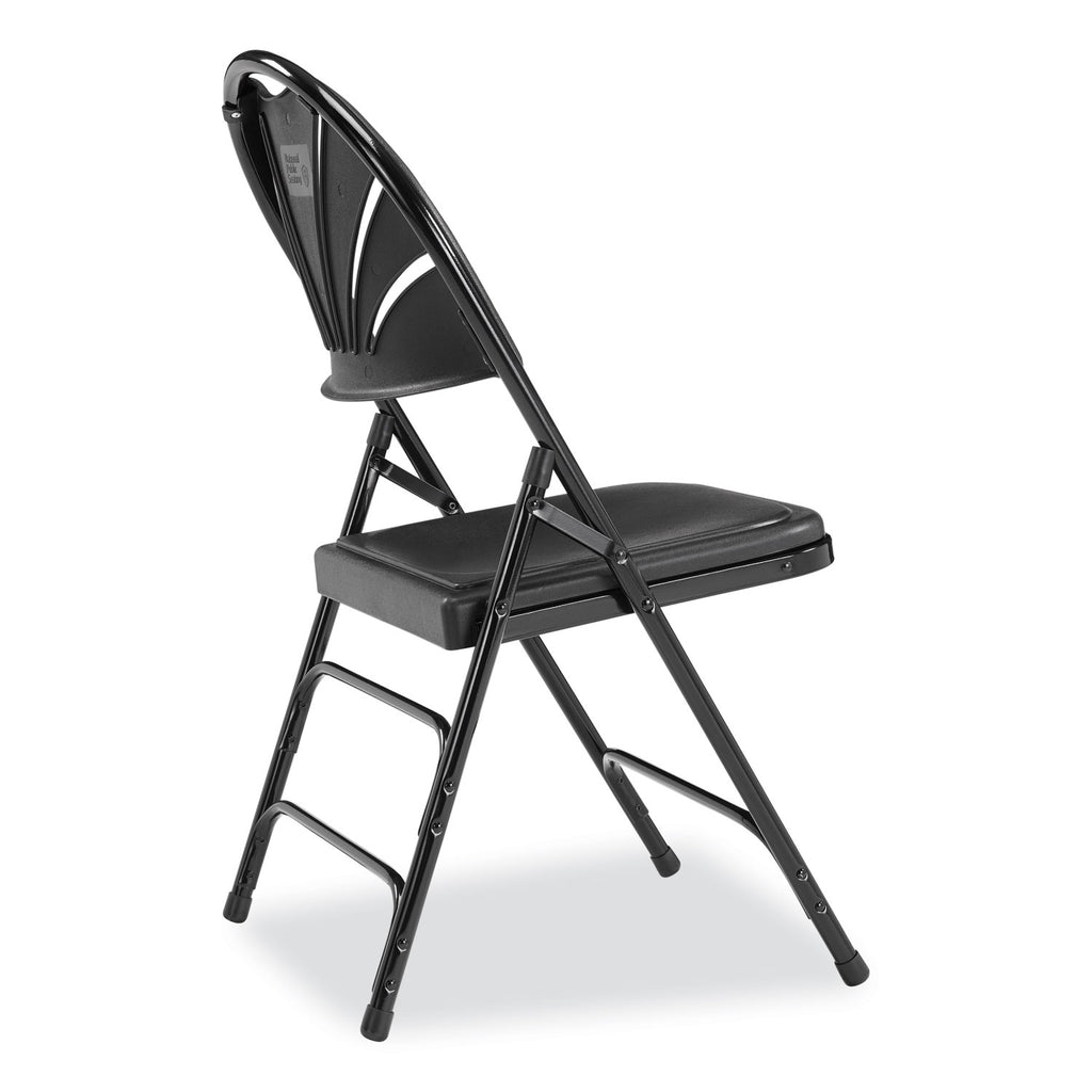 NPS® 1100 Series Fan-Back Tri-Brace Dual Hinge Folding Chair, Supports Up to 500 lb, 17.75" Seat Height, Black, 4/Carton