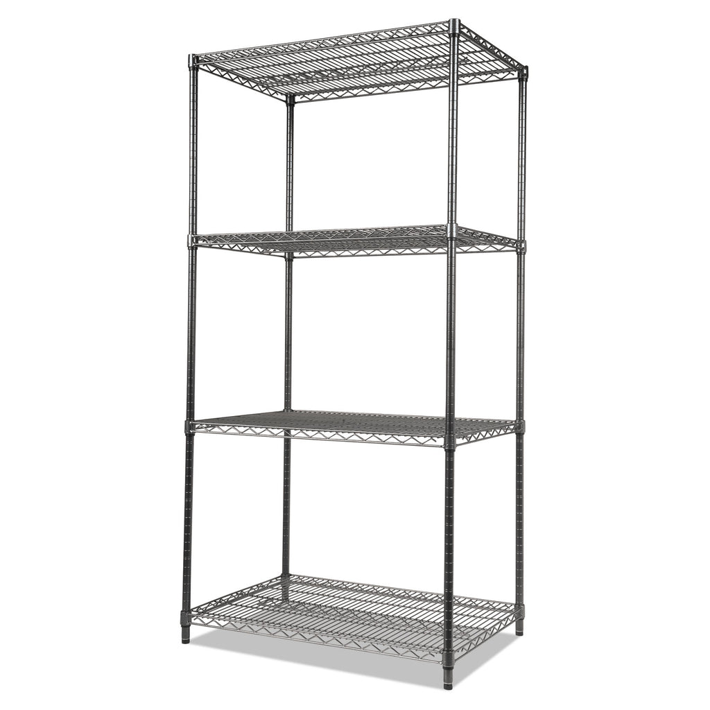 Ideal storage solution for commercial and restaurant use. Black Anthracite finish is National Sanitation Foundation (NSF) certified for wet and dry environments. Includes four shelves, eight 36" posts, floor leveling glides and conversion kit to convert to two half-height two-shelf units.