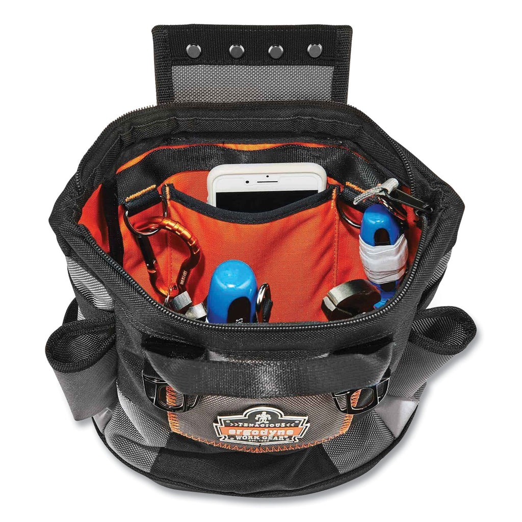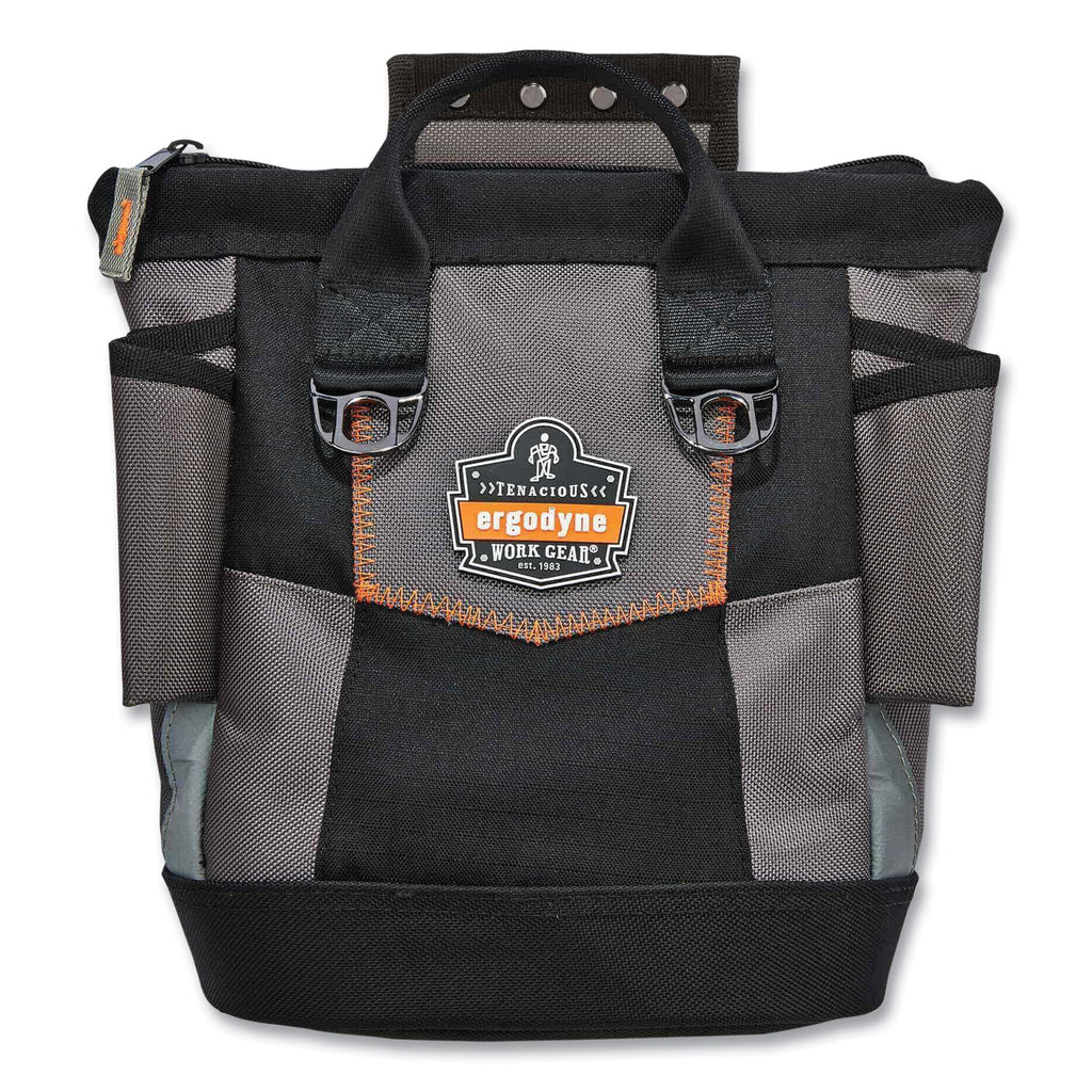 The topped tool pouch with zipper closure houses tools, small parts and hardware. The one-handed snap-hinge opening has a zipper closure system for safety and security. An innovative modular buckle connection system on the back easily connects to standard tool belts and fall protection harnesses without the worker having to remove them. Tool lanyards can be attached to two D-rings on the holster for additional safety and security. Can be used as both a tool pouch, tool bag or bolt bag.