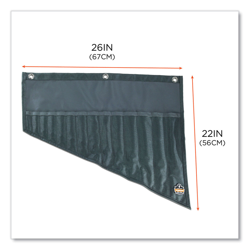 - Durable tie straps cinch tight to prevent tools from spilling out.