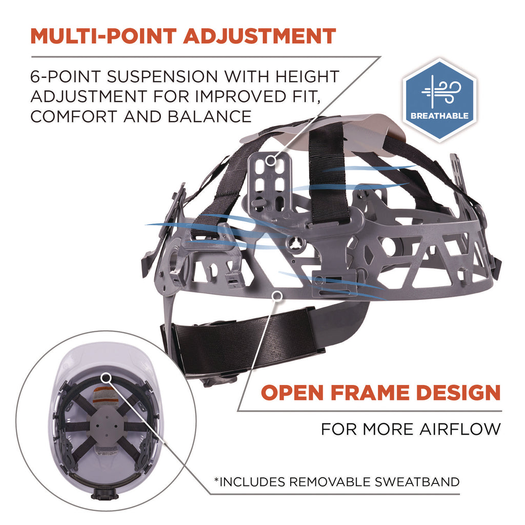 - Flexible open suspension frame and always-open venting improve air circulation and make for a cooler hard hat in the heat.