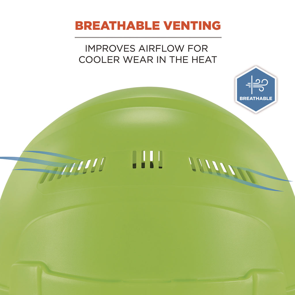 The 6-point suspension provides lightweight yet durable protection to shield the top of the head from falling objects or bumping into stationary objects. This vented hard hat features a lightweight HDPE plastic shell for comfort without comprised protection.