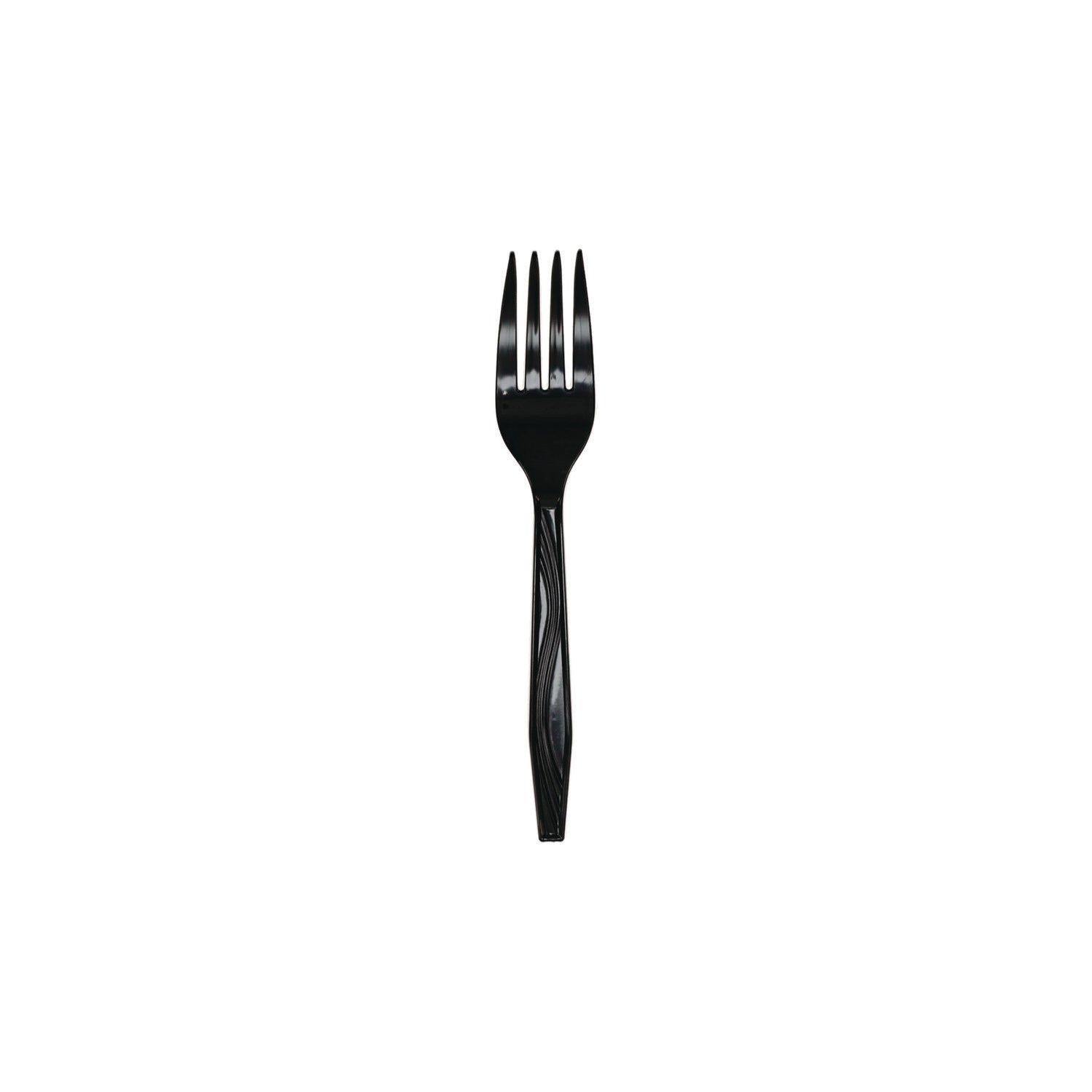 Pactiv Evergreen Meadoware Cutlery, Individually Wrapped, Medium Heavyweight Fork, Plastic, Black, 1,000/Carton