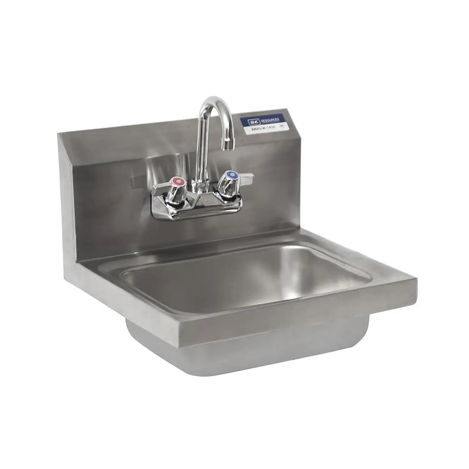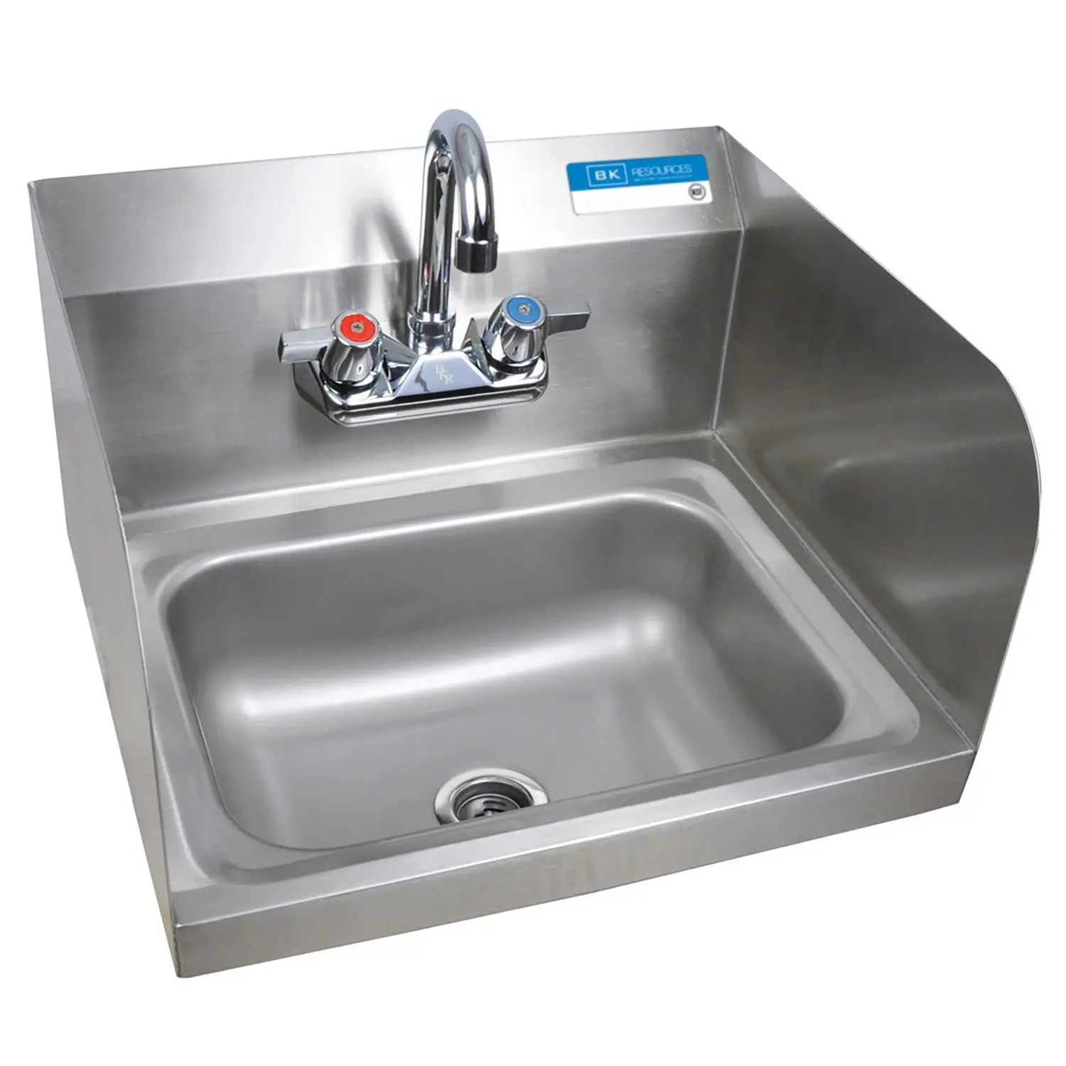 BK Resources Stainless Steel Hand Sink with Side Splashes and Faucet, 14" l x 10" w x 5" h