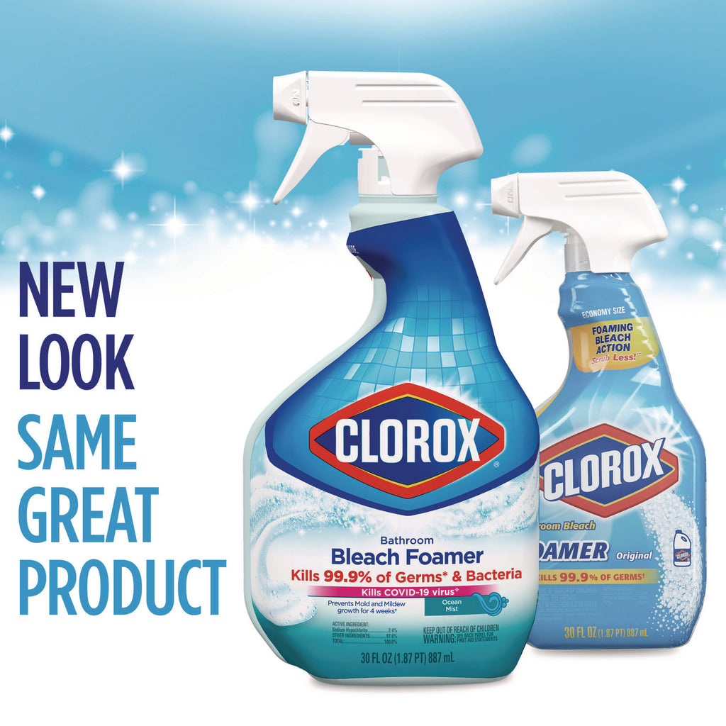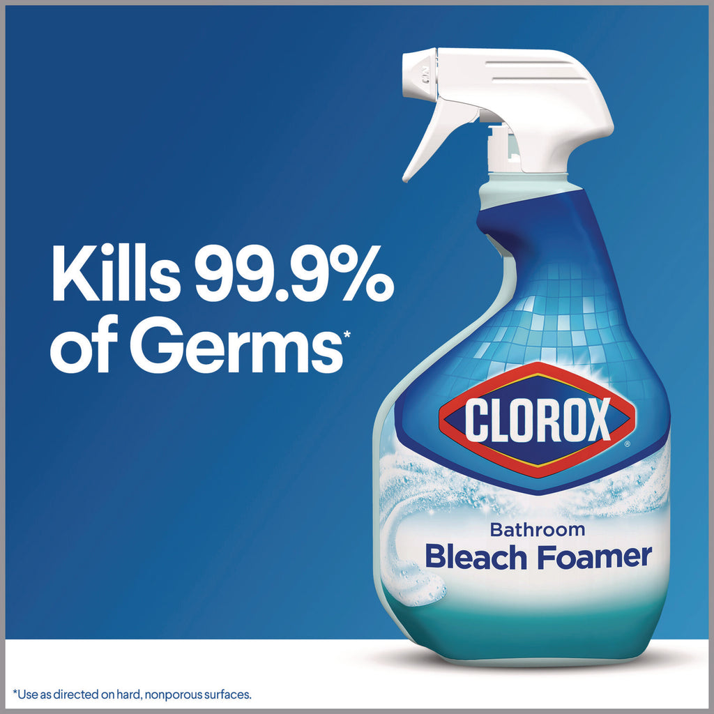 - Powerful bathroom spray with bleach provides foam coverage that easily removes soap scum and mold and mildew stains in your bathroom, no scrubbing required.