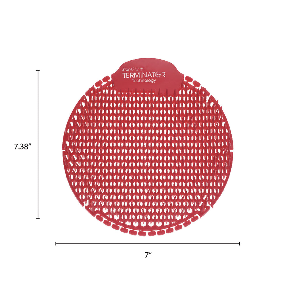 Slant7 30-day urinal screen with Terminator Technology kills the source of odors and virtually eliminates urine splash.