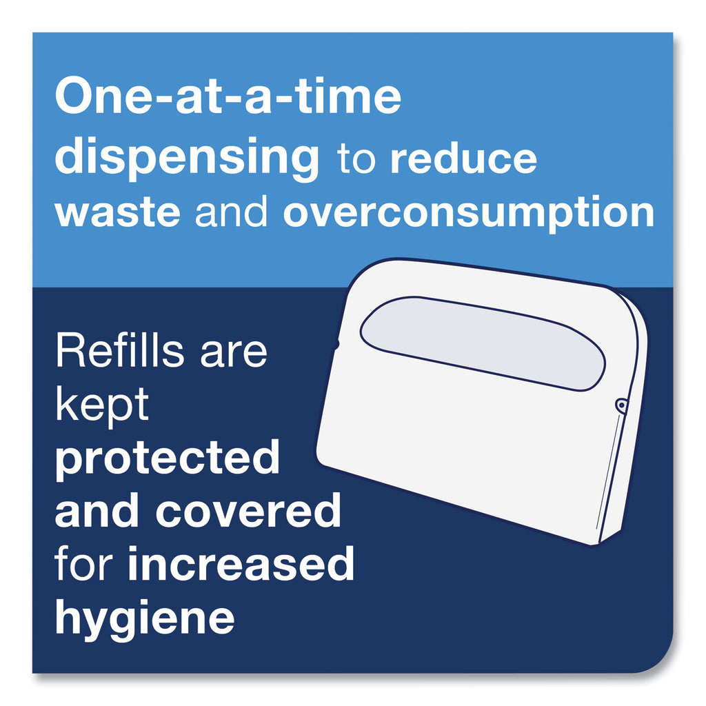 Half fold design is an easily dispensable, ready for use format. Placed over toilet seats for added cleanliness. Guards against bacteria and infections that can be passed by contact with toilet seats. Promotes sanitary practices in the washroom. Hygienic to protect users from cross contamination.