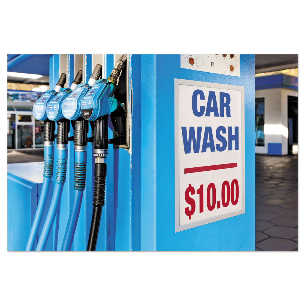 Professionally display signage with DURAFRAME® Self-Adhesive Sign Holders from DURABLE®. Quickly and seamlessly showcase important information on windows, glass doors, or any smooth, solid surface, offering instant visibility exactly where you need it most. It's double-sided so you can display two messages simultaneously. Perfect for storefronts, entry or exit doors, conference rooms, or anywhere signage needs to be seen from both directions. The flip-up magnetic frame securely holds multiple pages, enabling infinite updates to your promotions, announcements, safety information, or directional signage. The sleek and modern design of the frame enhances the aesthetic appeal of your displays no bulky mounting hardware or unsightly tape. With easy application and repositioning, you can confidently adhere the frame and make adjustments as needed without leaving behind residue. You can mount it in either portrait or landscape position to best suit your display needs, offering flexibility and versatility for various signage applications. DURAFRAME is great for fast-paced environments where people are approaching the sign from the front and back, like retail stores, restaurants, hotels, offices, warehouses, healthcare facilities, and manufacturing plants.
