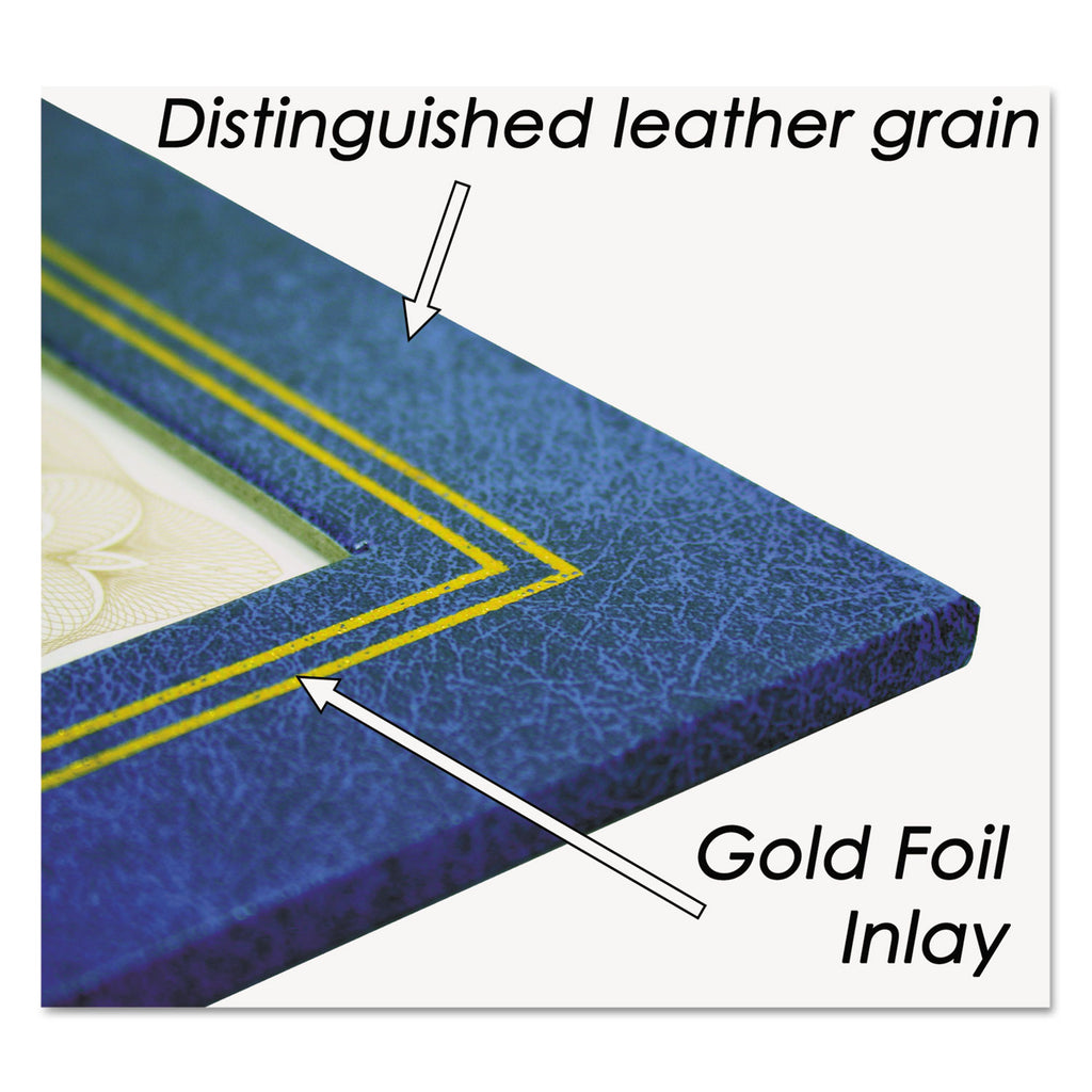 - Buffalo grain simulated leather with gold foil inlay trim frames and showcases your documents.