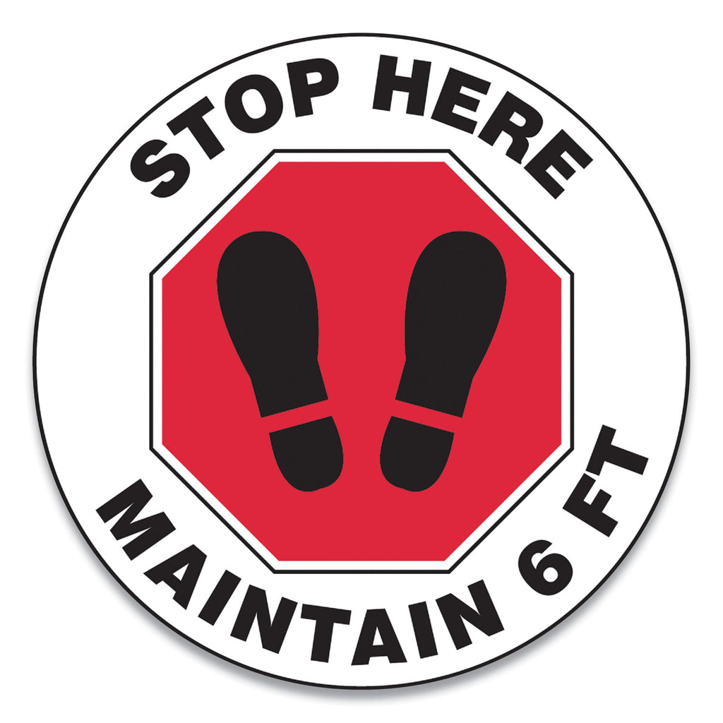 Alert and remind visitors, customers, and employees to practice social and physical distancing to prevent the spread of COVID-19, the Coronavirus. Constructed of thick adhesive vinyl. Subsurface printed and laminated to protect the graphics and message from heavy pedestrian traffic. Non-slip, pebble-textured surface provides added durability. Strong, permanent, acrylic adhesive back with peel-off liner. Adheres firmly to smooth, clean, dry surfaces.