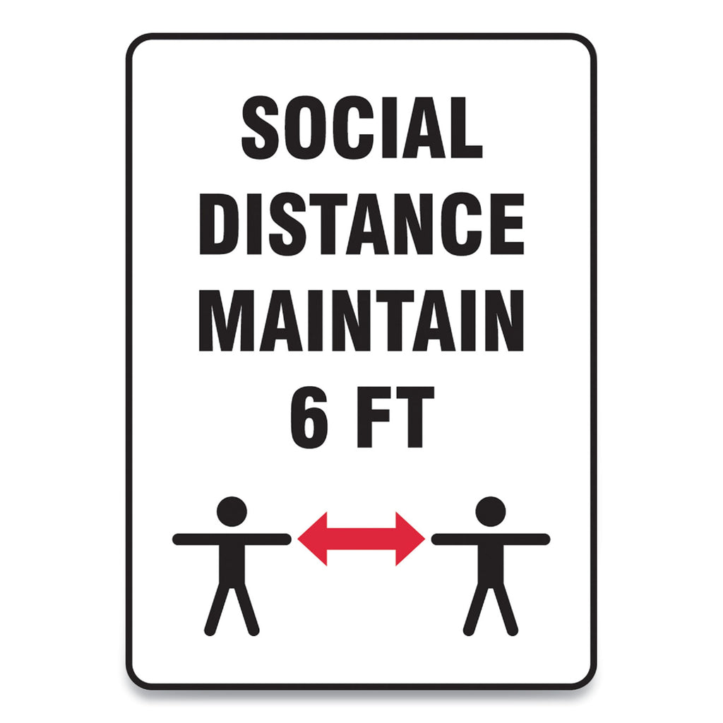 Alert and remind visitors, customers, and employees to practice social and physical distancing to prevent the spread of COVID-19, the Coronavirus. Durable plastic has slight flex that is ideal for indoor and sheltered outdoor environments. Printed surface has clear UV protective overcoat. Recycled content with UV inhibitors and good impact resistance. Rounded corners with 3/16" mounting holes for installation.