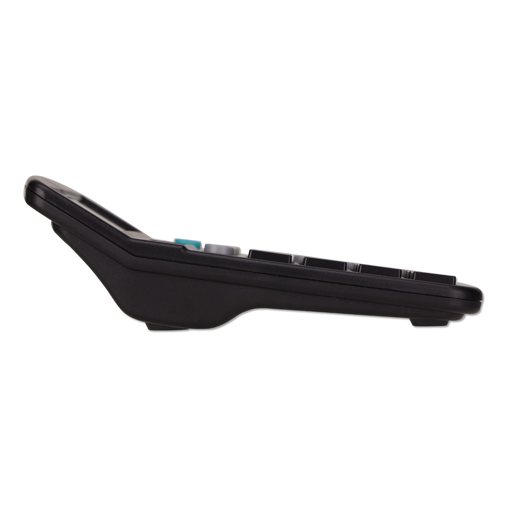 Ideal for everyday calculations, this desktop calculator adds up to a great office essential. Dual solar/battery power provides reliable functionality in all lighting conditions. Angled display prevents overhead glare and eyestrain. 12-digit display for basic calculations.