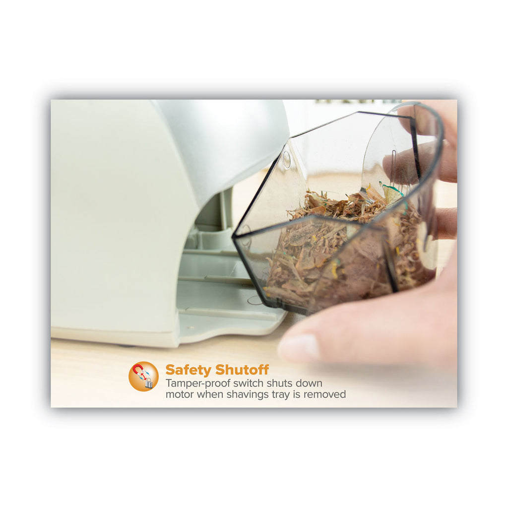 Faster, more powerful sharpening without all the noise-perfect for the office or home. Chic sharpener features HHC hardened steel cutters for 65% faster sharpening and a 6x longer life than single-blade models. Heavy-duty QuietSharp motor operates stall-free with normal use as the thermal-overload protection extends motor life. Tip Saver Technology prevents over-sharpening for pencil longevity. Internal safety switch prevents operation when the easy-clean shavings tray is removed.