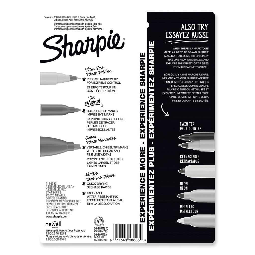 - Mixed point size pack contains two fine, two ultra-fine, and two chisel tip permanent markers.