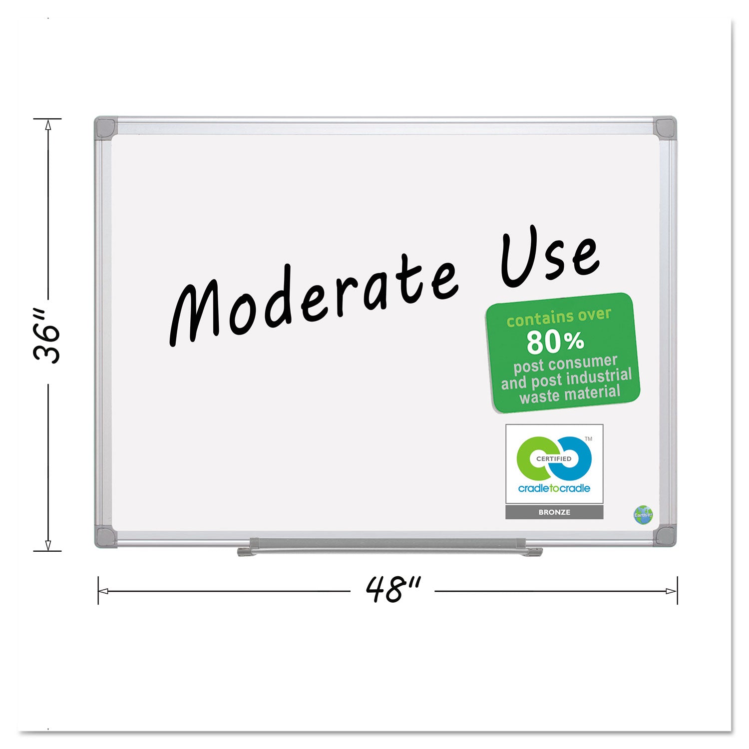 MasterVision® Earth Silver Easy Clean Dry Erase Boards, 36" x 24", White Surface, Satin Aluminum Frame