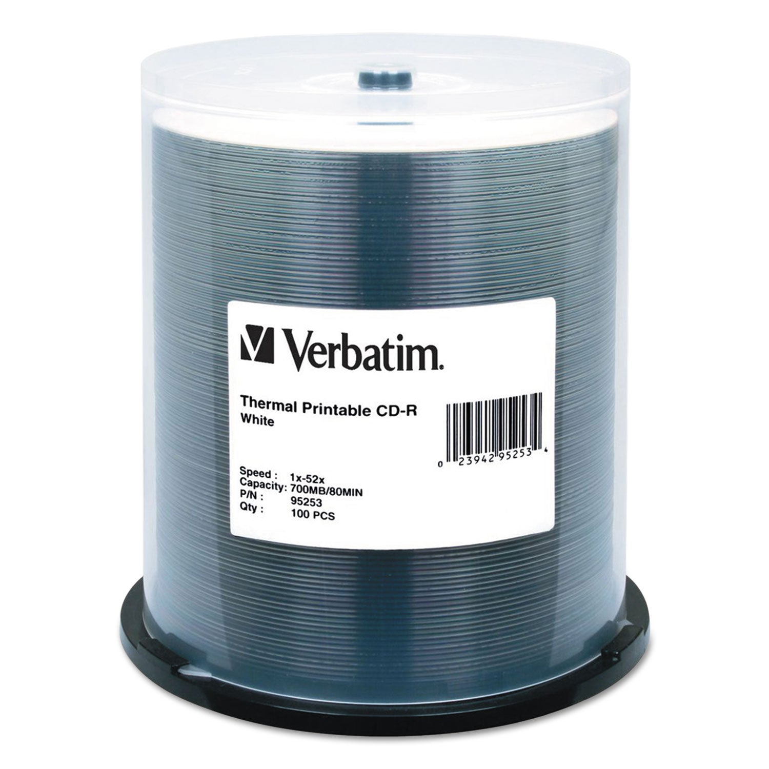 Verbatim® Cd-R Datalifeplus Printable Recordable Disc, 700 Mb/80 Min, 52x, Spindle, White, 100/pack