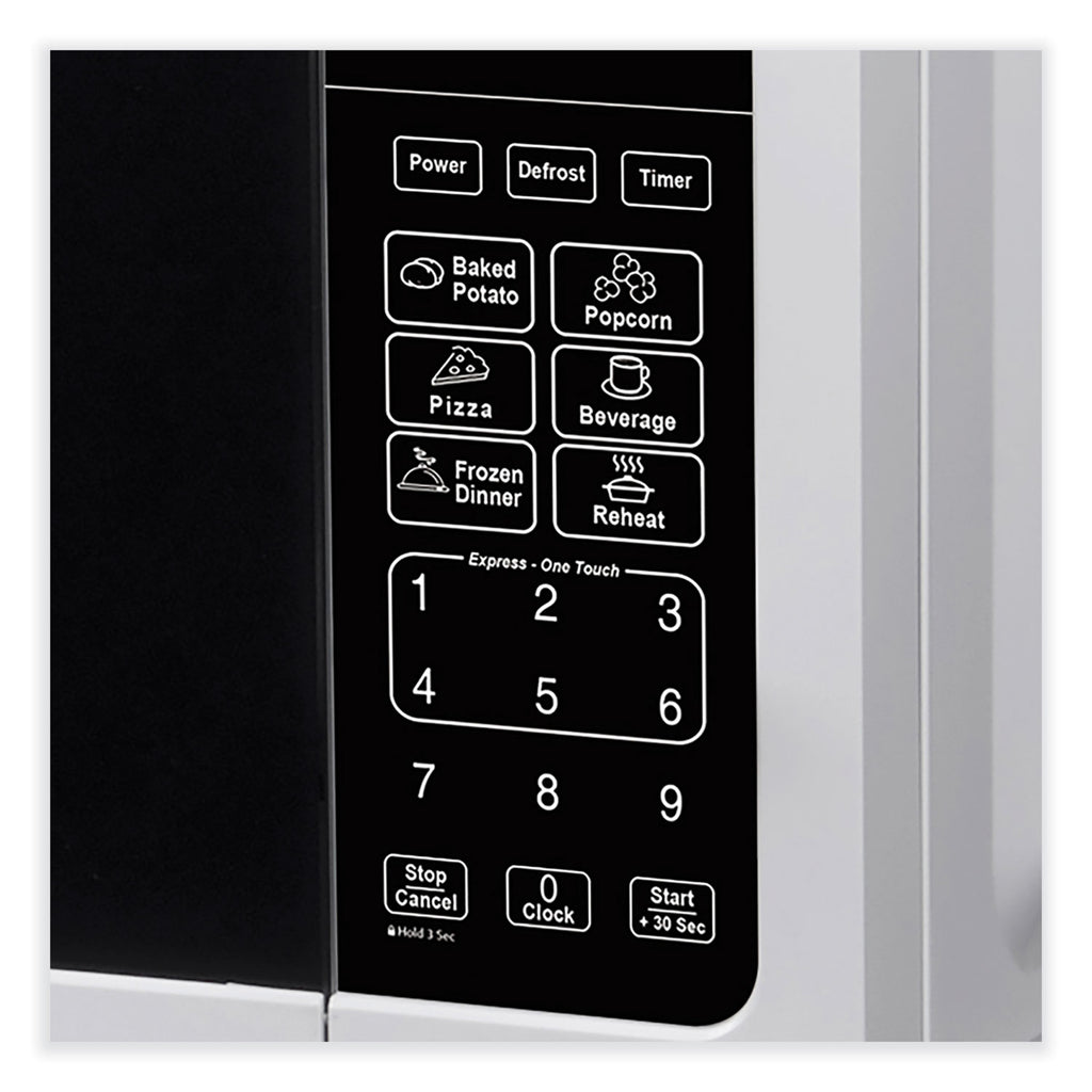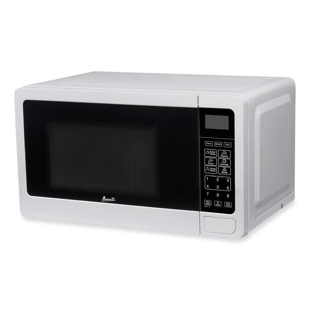Save counter space with this compact 0.7 cu ft microwave oven. The perfect countertop microwave oven for the dorm, man cave, office, studio apartment, RV, tiny home, rental room, condo, vacation home, or anywhere you need to cook food fast. This small microwave features 700 W of cooking power, an electronic control panel, one-touch cooking programs, and a turntable with a glass tray all in its compact footprint that fits perfectly on the countertop.