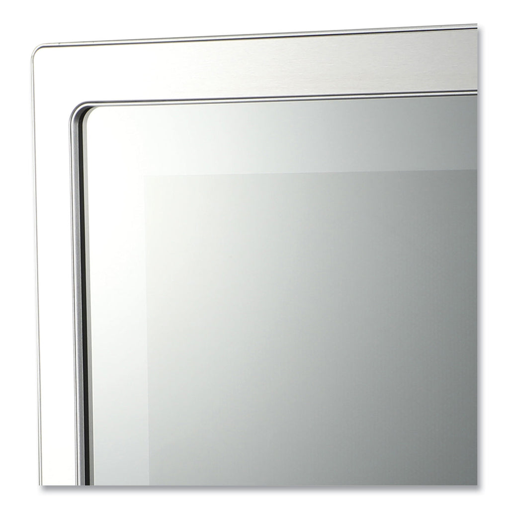 - Stainless steel microwave with mirrored door complements any decor.