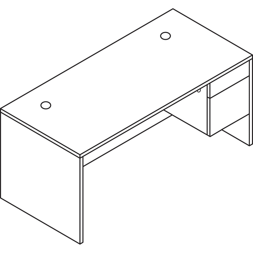 66"W Left Pedestal Desk for use with Right Return or Right Pedestal Desk for use with Left Return. Desks have two cord grommets in top. Desk and Return sold and shipped separately--ORDER BOTH.