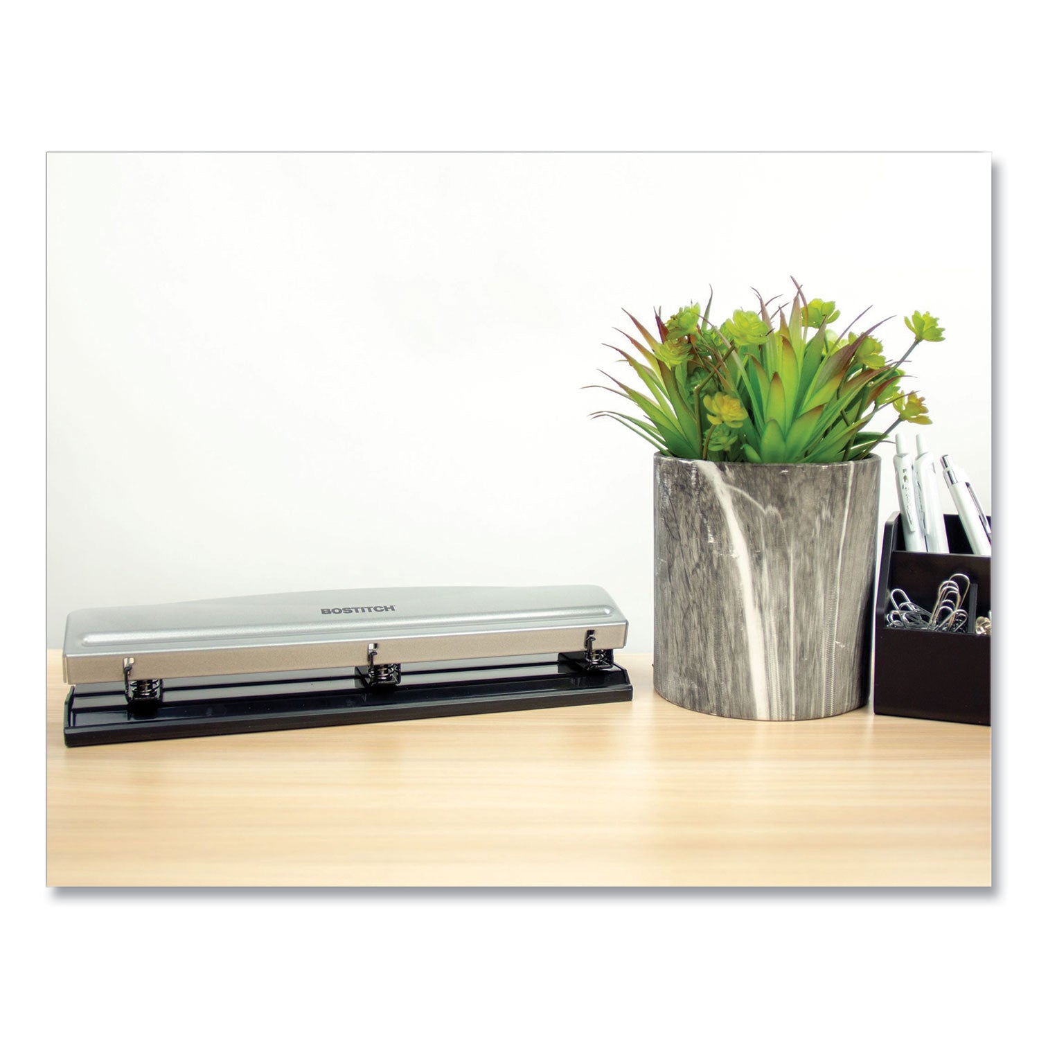 Slim and lightweight, this compact office essential tackles your punching tasks, while taking up minimal space on your desktop. Steel heads are precision-tooled for clean performance. Durable, all-metal body features a non-slip rubber base and an Easy-Clean chip tray.