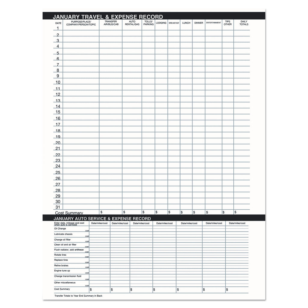 | Footnote 1 | Includes 12-month expense log and 30 memo pages |
