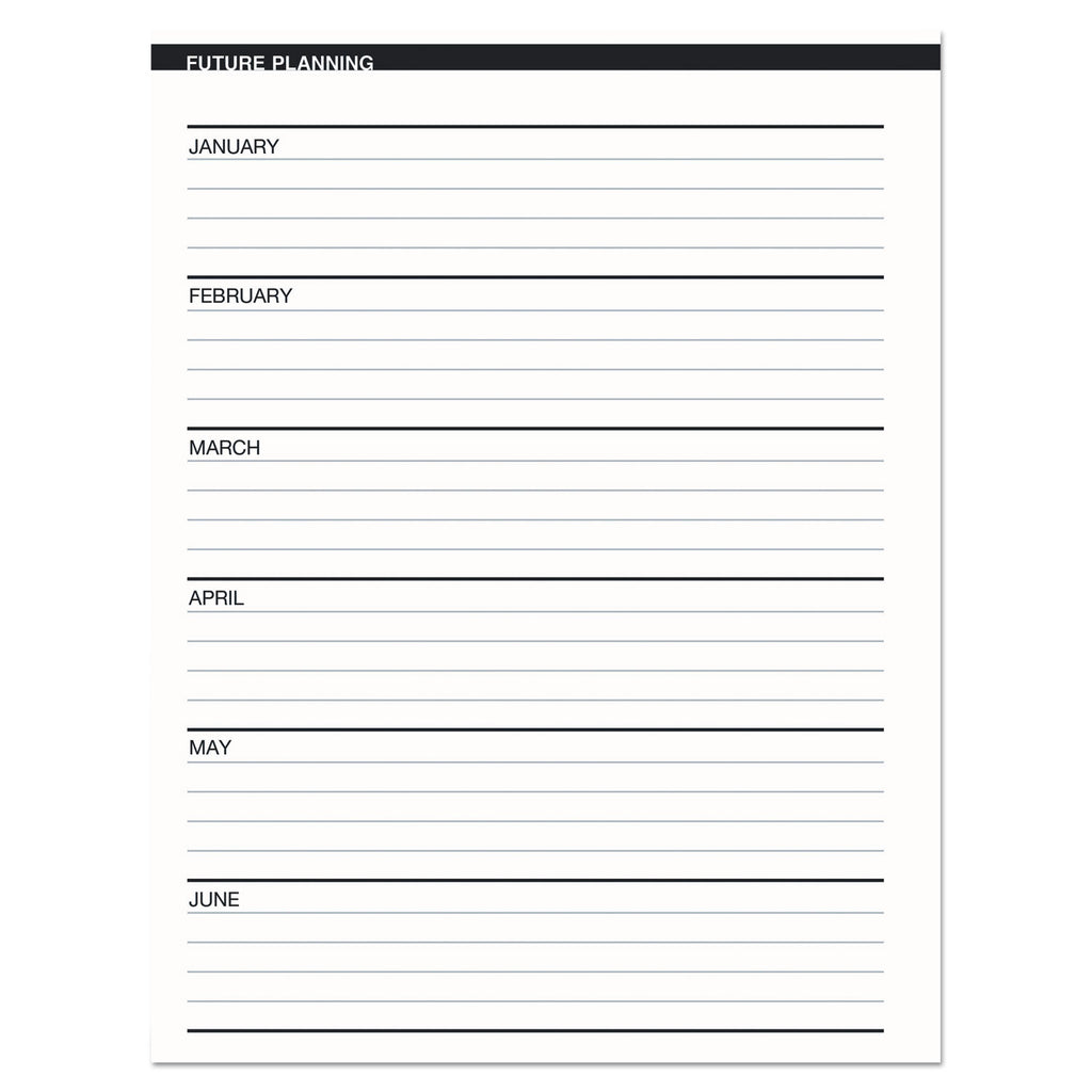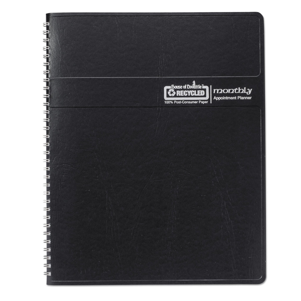 Each daily block is lined for optimum use. Extra room to note necessary appointments. Includes a double-sided storage pocket. The sturdy cover is made of embossed simulated-leather material. Made entirely of recycled materials.