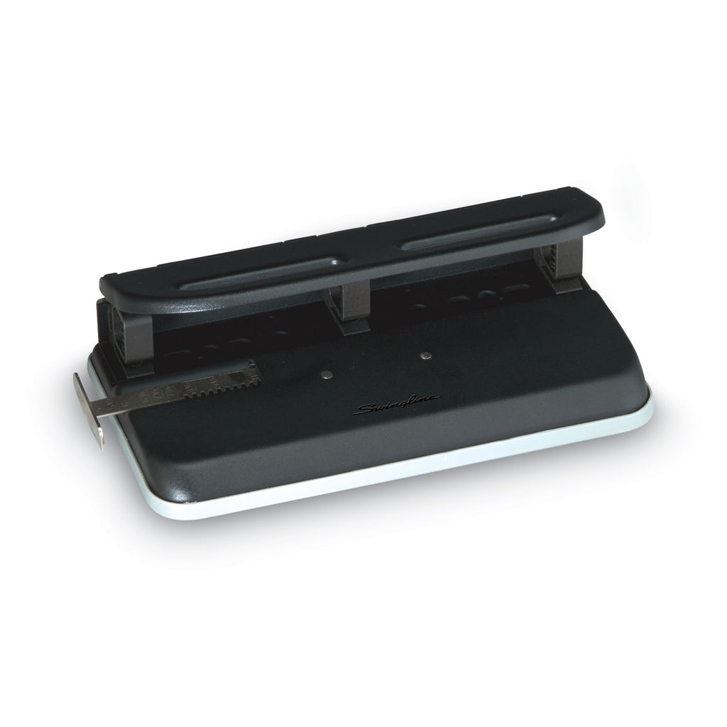 Padded handle for painless manual punching. Manual 2- to 7-hole punch with patented pin technology delivers precision punching. 24-sheet paper punch capacity; 9/32" holes. Semi-adjustable to accommodate up to seven punch heads. Replacement punch head sold separately.