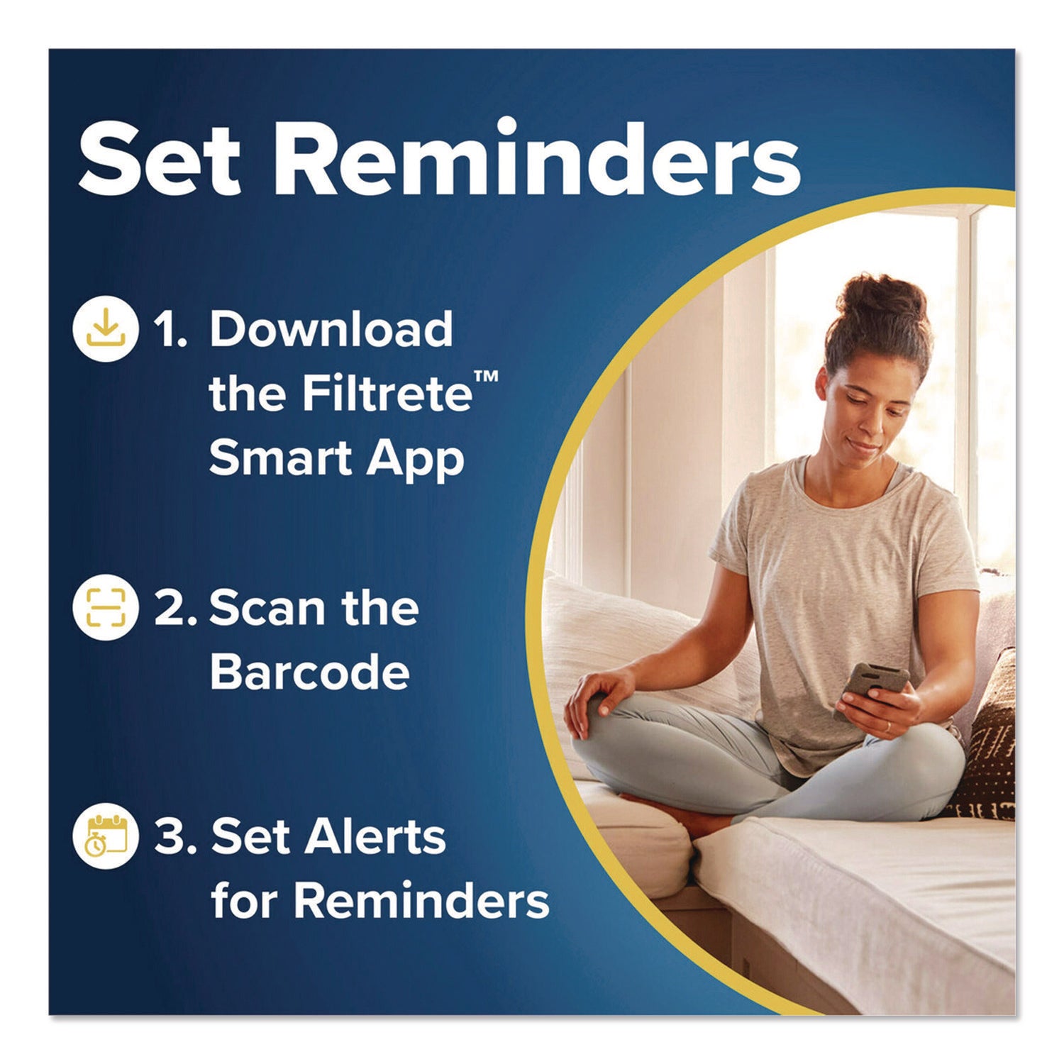This no-nonsense filter helps capture varying sizes of particles, from the large (lint, pollen, dust and pet dander) to the microscopic (smoke and smog). Opt for this filter to transform your central heating and cooling system into a whole-home air filtration operation. Designed with exclusive Filtrete™ Brand 3-in-1 technology from 3M to trap unwanted air particles while letting cleaner air flow through. Create a change countdown in the Filtrete™ Smart app. Simply use the app to scan the barcode on your filter's packaging, then choose 30, 60 or 90 days for your replacement countdown. When the lifespan is up, you'll get a notification to change your filter.