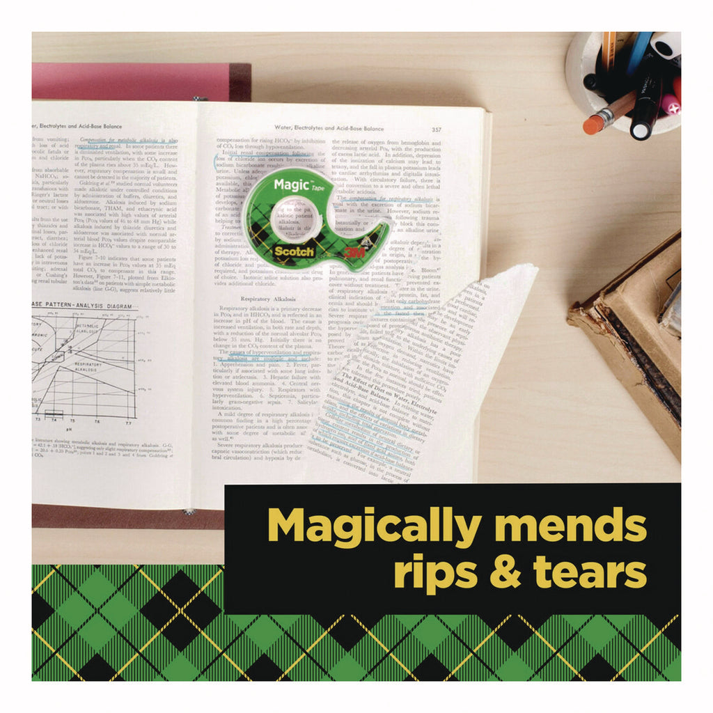 The preferred tape for offices, homes and schools on a convenient dispenser. Tape rolls out smoothly, cuts evenly with no time, energy or tape wasted. Magically mend the many rips and tears of life securely, permanently, and invisibly.