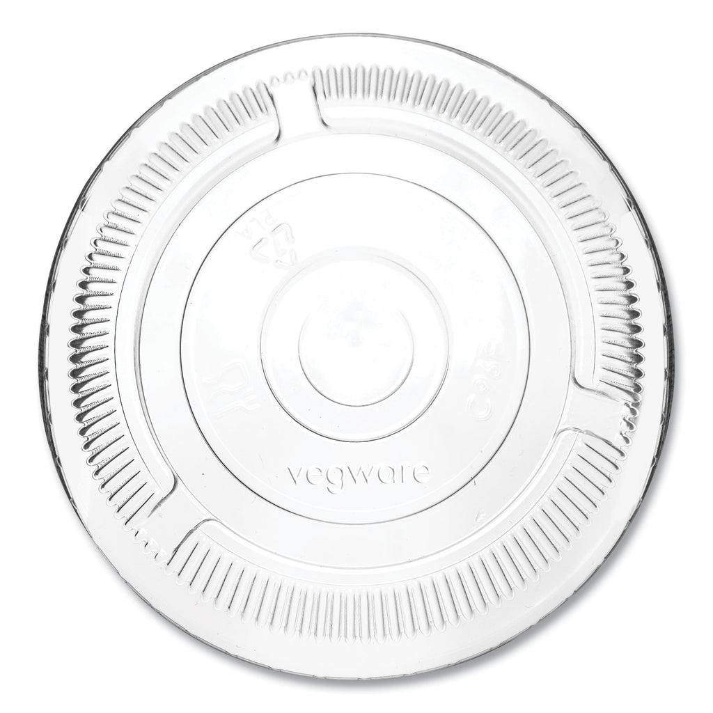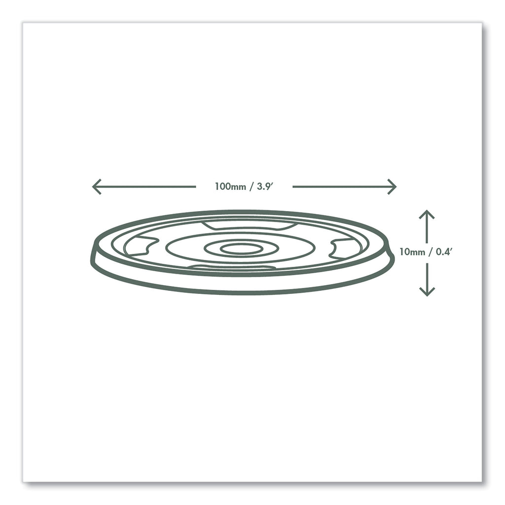 A flat lid with a straw hole for Vegware™'s 96-Series cups. A lid for serving cold drinks with a straw. Made from PLA, a renewable material made from plants. Clear for visibility. Award-winning quality by Vegware™, made from plants. Commercially compostable where accepted.