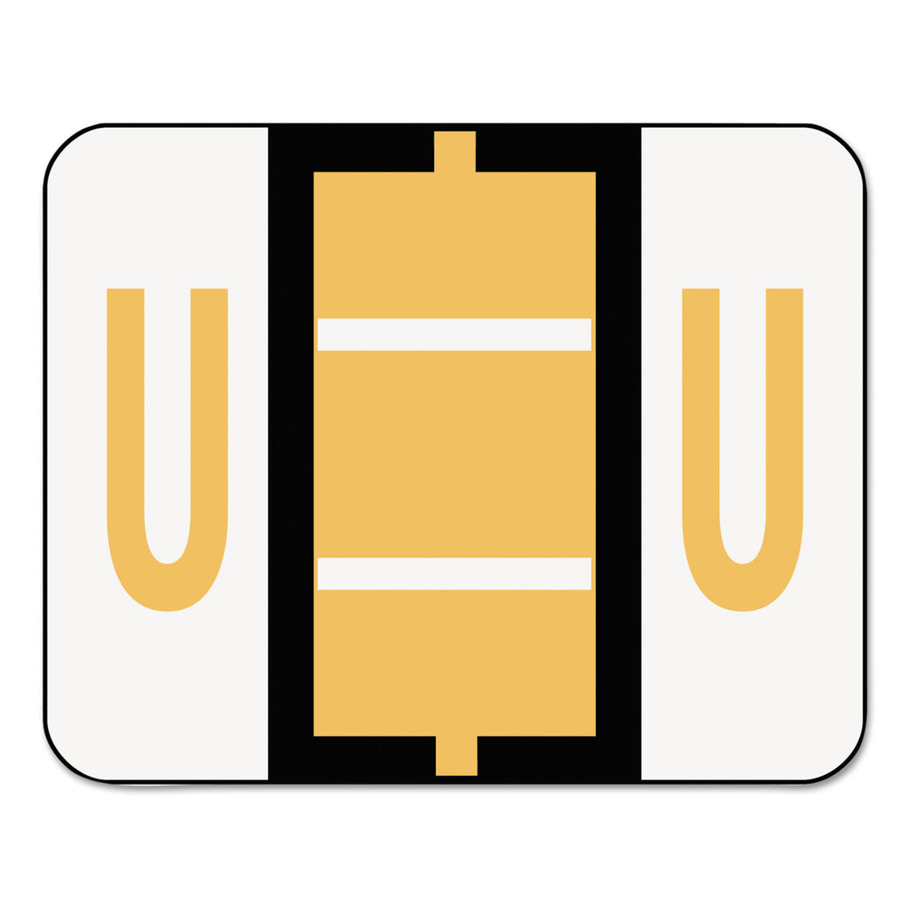 Keep files organized at a glance with these alphabetic labels that feature a wraparound solid color bar and a colored character printed on a white background. Colors are compatible with end tab systems using the bar-style format. Convenient dispensing box for easy peel off and application. Includes 500 labels per roll. Compatible with Tab® Products 1283 series alphabetical labels.