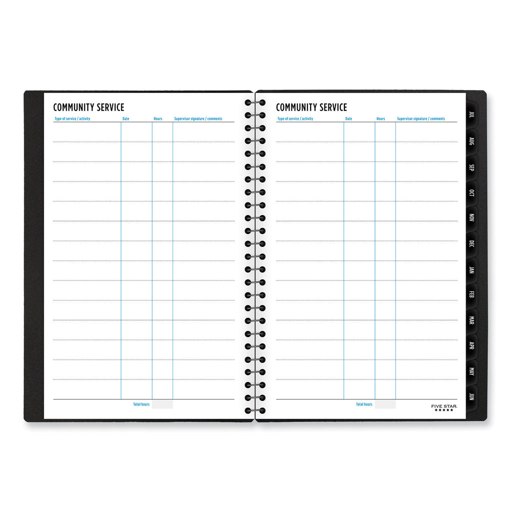 | Separate Sections | Community Service Tracker; Contacts; Notes; Two-Year Reference Calendar |
