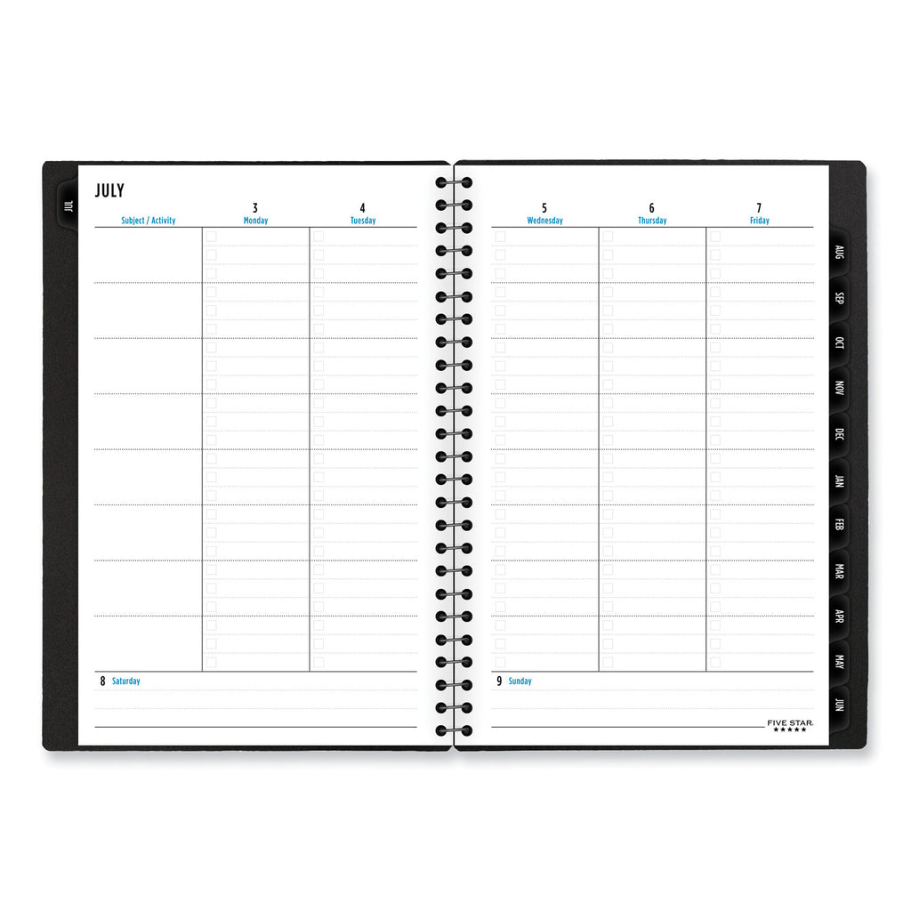 Lasts all year, guaranteed! Customize your look and manage a full class load. Front cover's clear overlay allows you to insert photographs, artwork and more to personalize your planner, while weekly and monthly planning pages make it easy to keep track of assignments, priorities and key dates. Guarantee is valid for one year from purchase date. Does not cover misuse. Visit the Five Star® website for more details.
