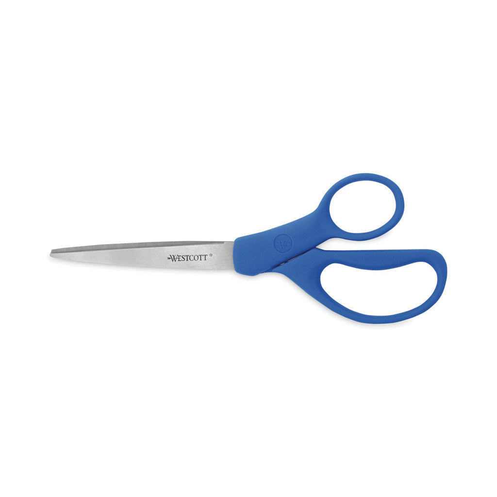 All-purpose shears with corrosion-resistant, stainless steel blades. The blades are ground on the inside and back edges for smooth, effortless cutting. Insert molded into plastic handles for greater durability.