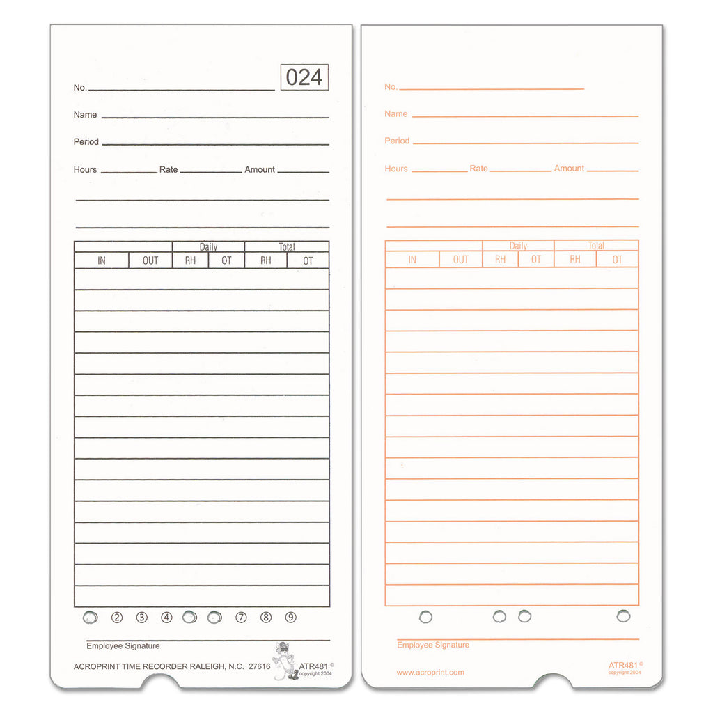 Replacement time cards for the ATR480 totalizing time clock. Pack of 50 cards.