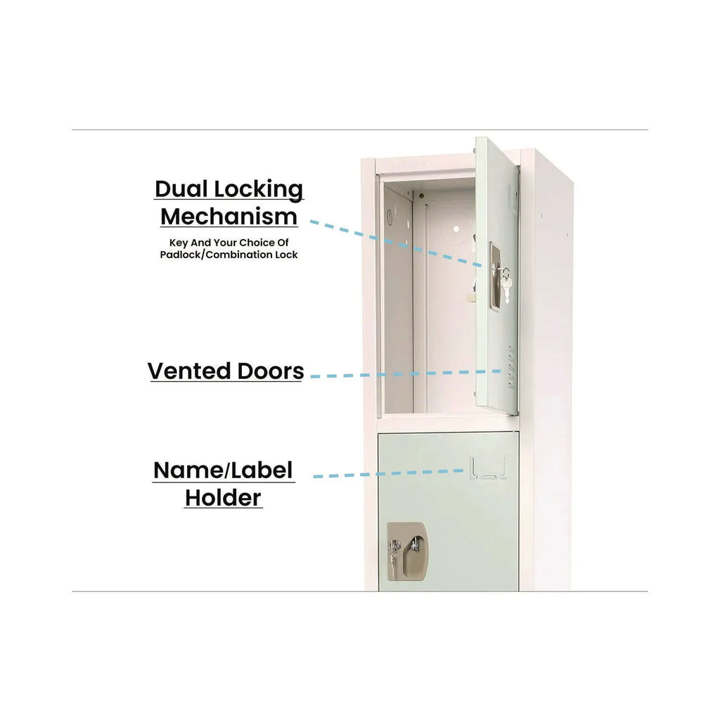 They provide ample storage space for clothing, shoes, books, and other personal belongings, ensuring your child's items are always organized and secure. Each locker door can be locked independently with included keys or accompanying locks, providing the highest level of security for your peace of mind.