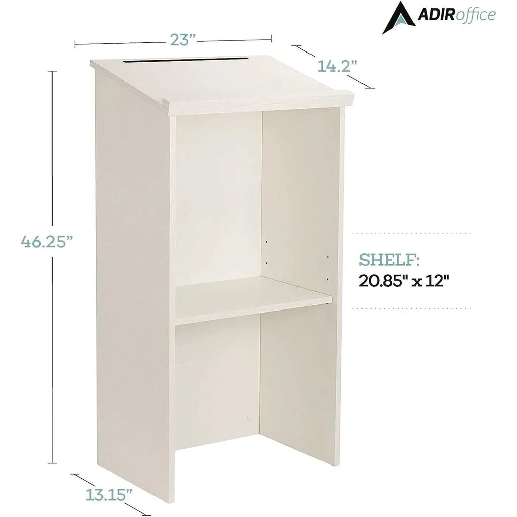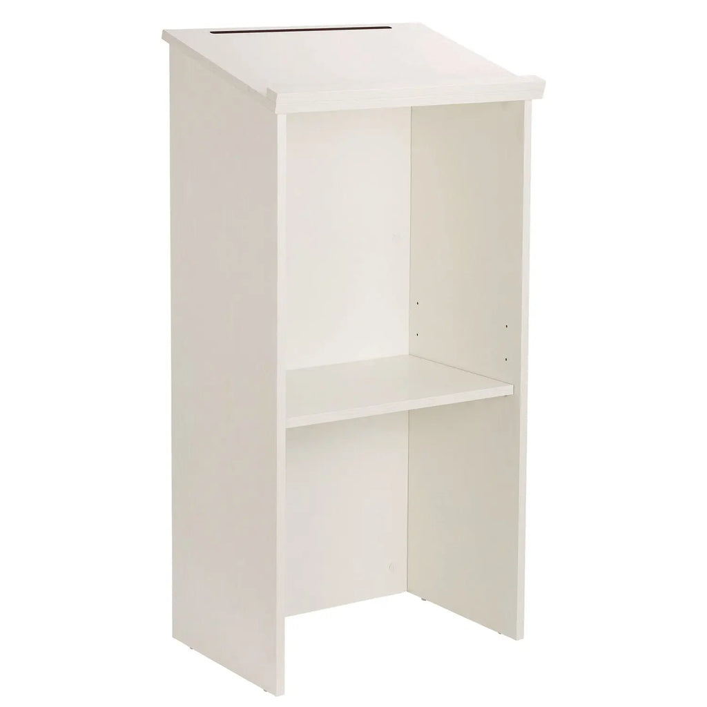 The best choice for conference rooms, meeting halls, congregations and classrooms. The podium features a slanted top that will prevent papers and books from sliding and a pencil slot to keep writing utensils at hand. The adjustable shelf will allow you store AV equipment or any other items.